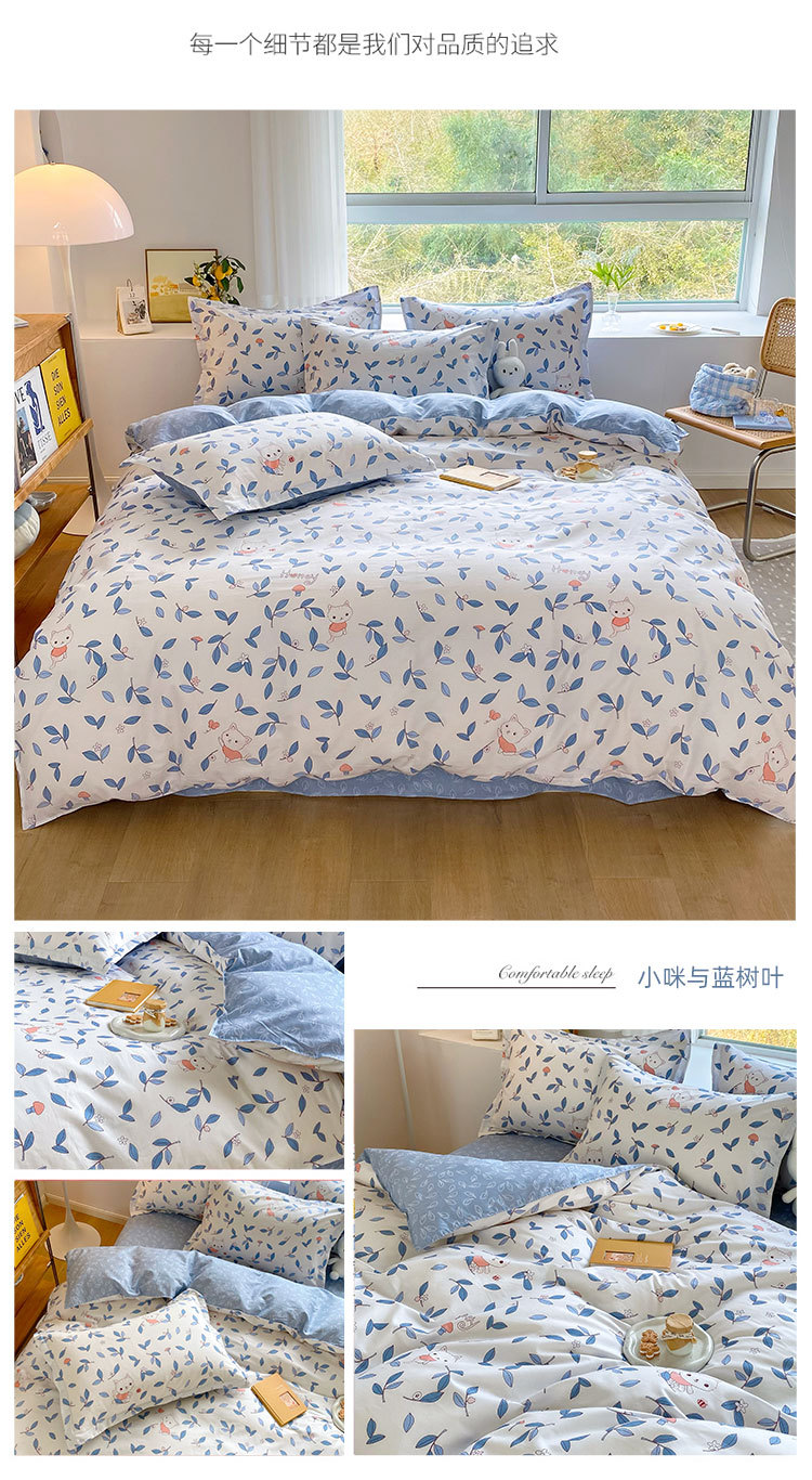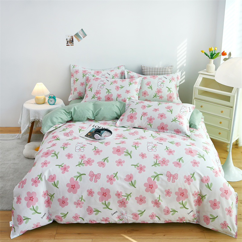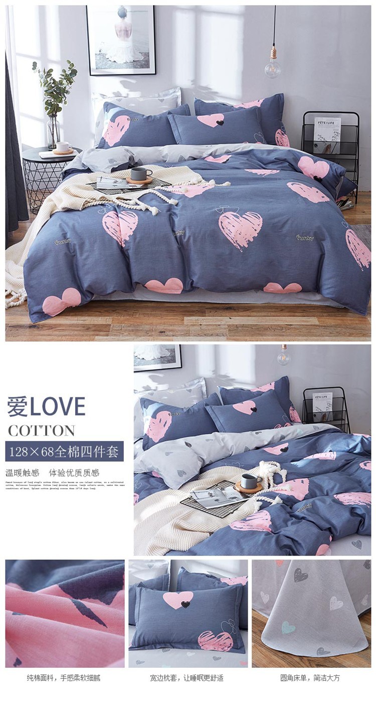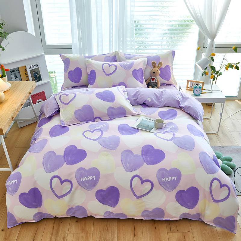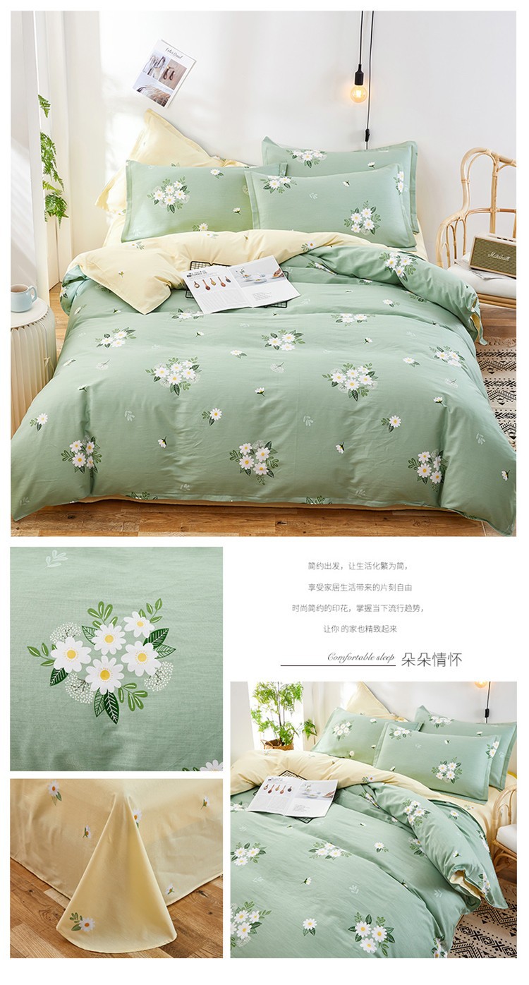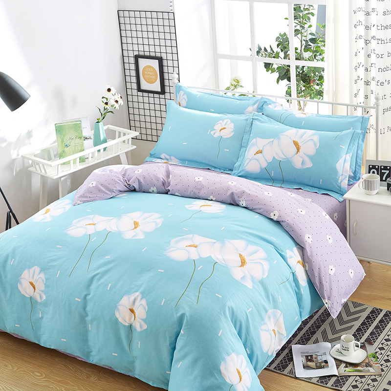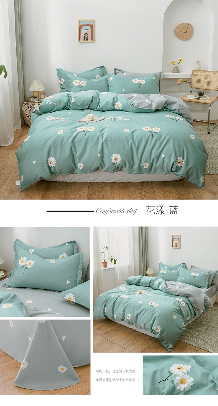 Ins 작은 신선한 면 4 조각 세트 간단한 만화 면 인쇄 학생 기숙사 침대 시트 퀼트 커버 3 피스 세트스토어 가기