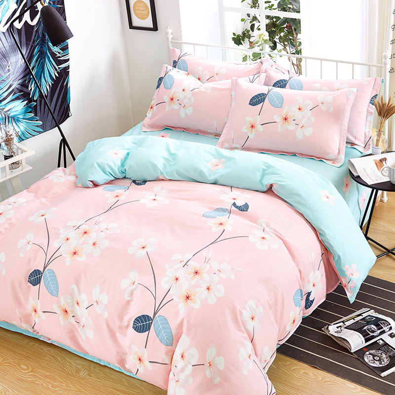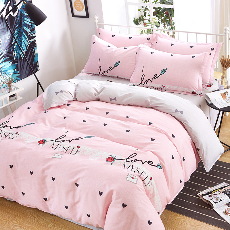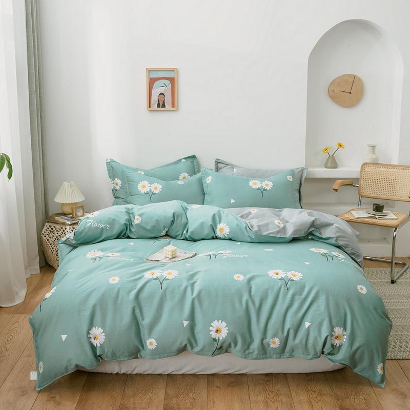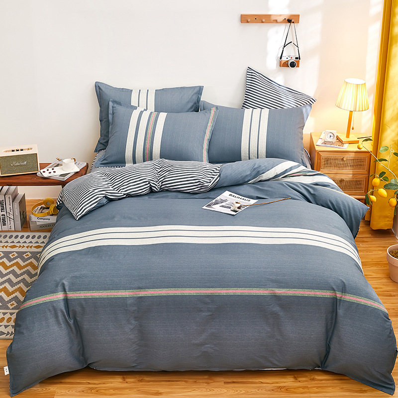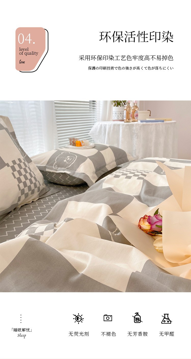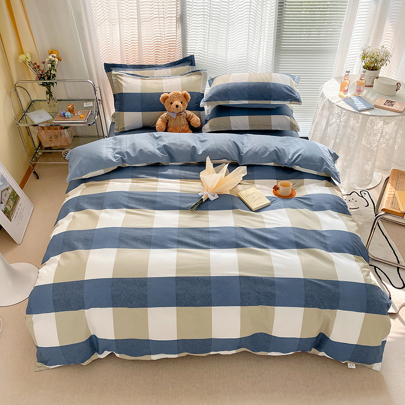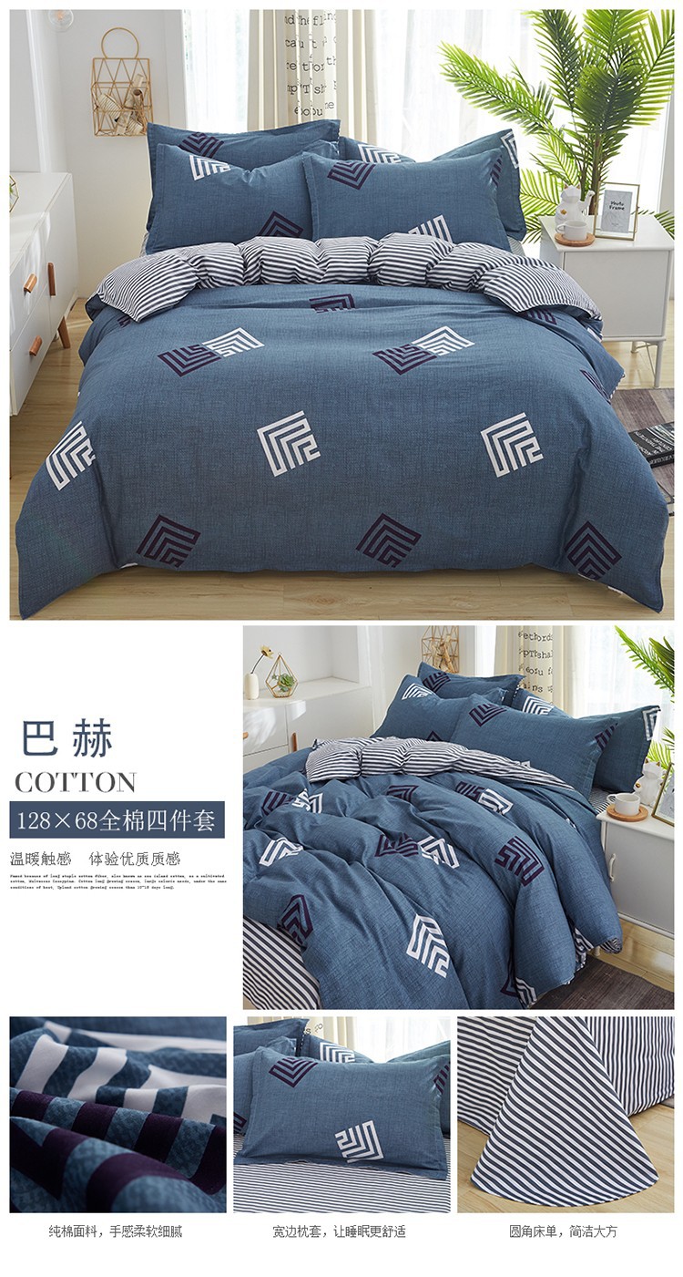 Ins 작은 신선한 면 4 조각 세트 간단한 만화 면 인쇄 학생 기숙사 침대 시트 퀼트 커버 3 피스 세트스토어 가기