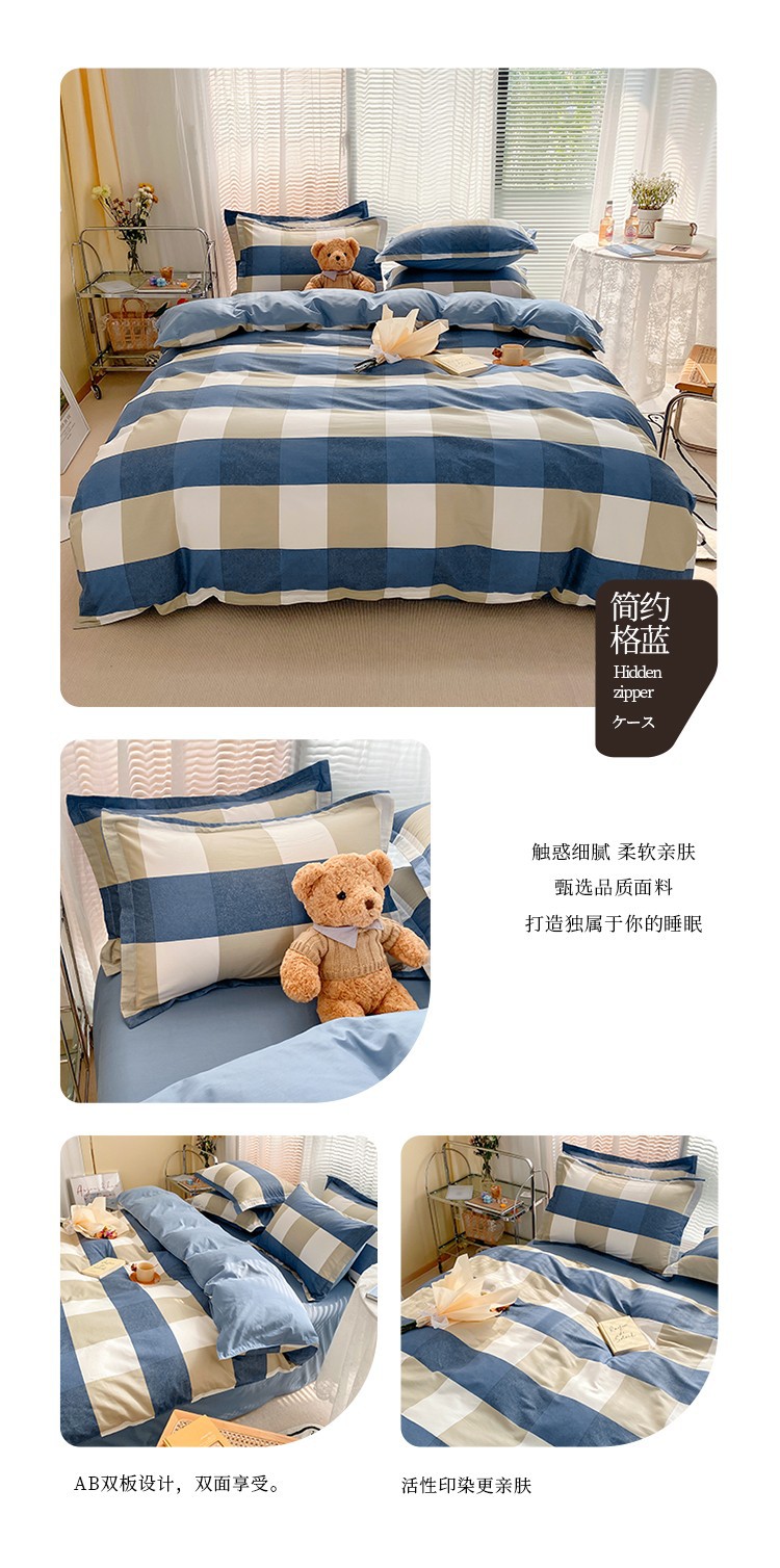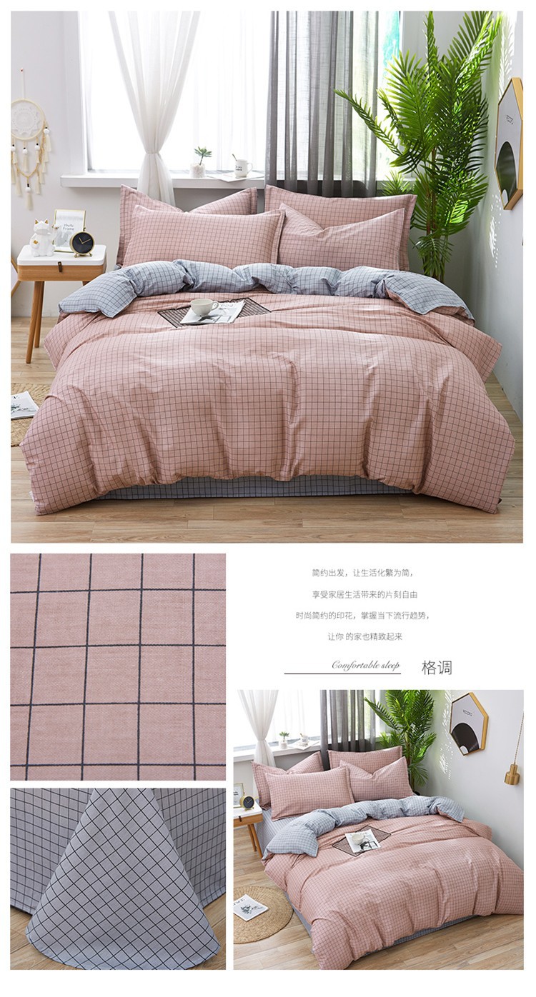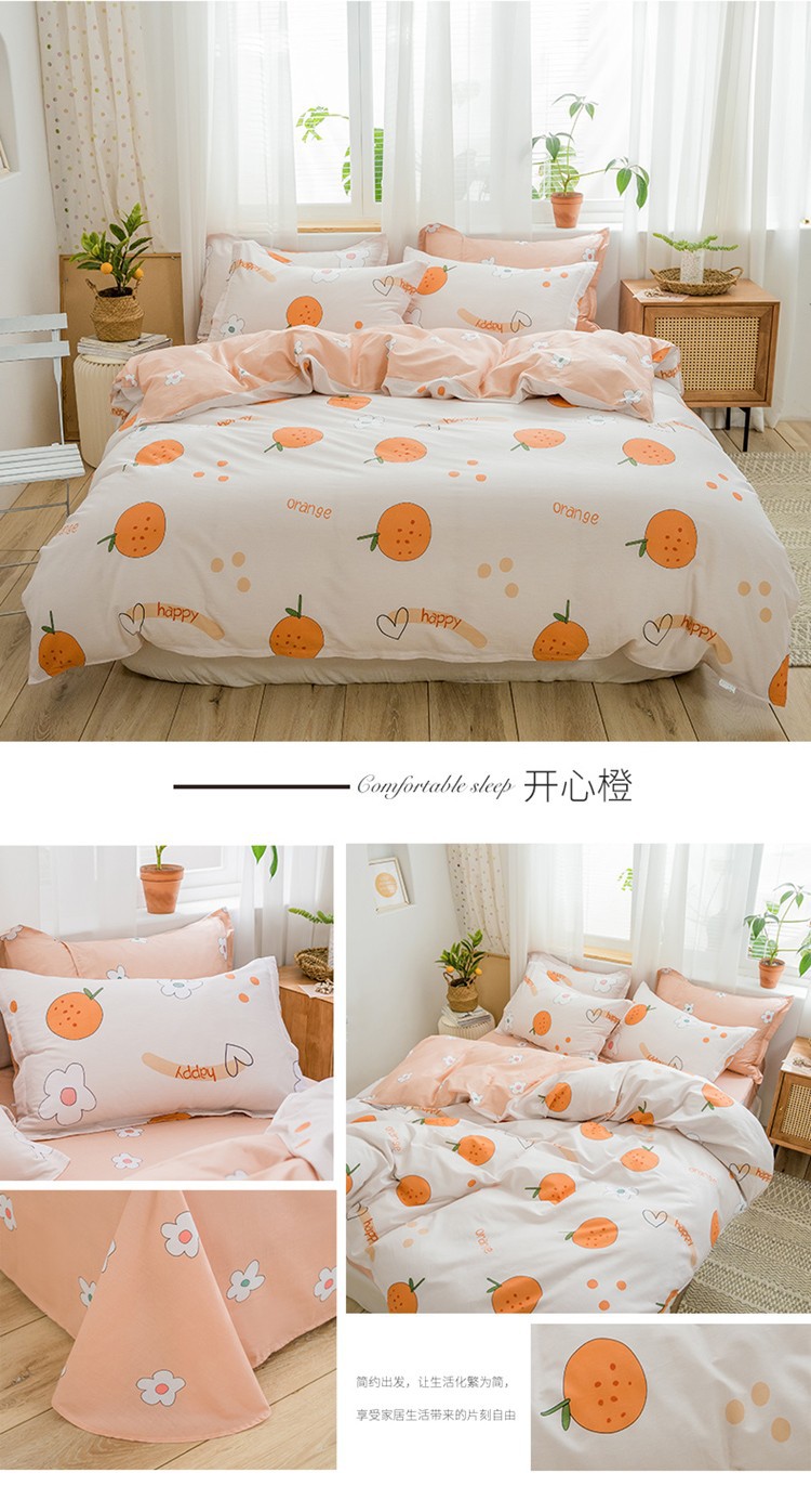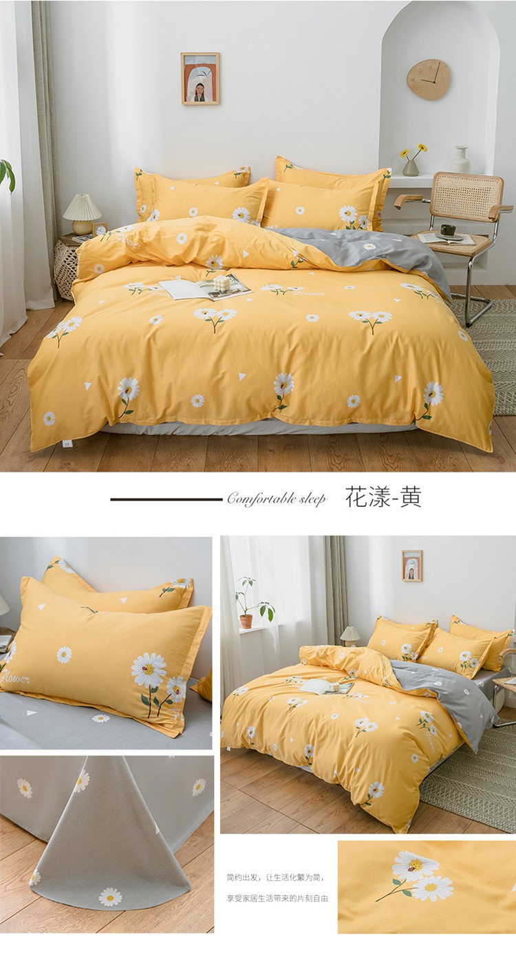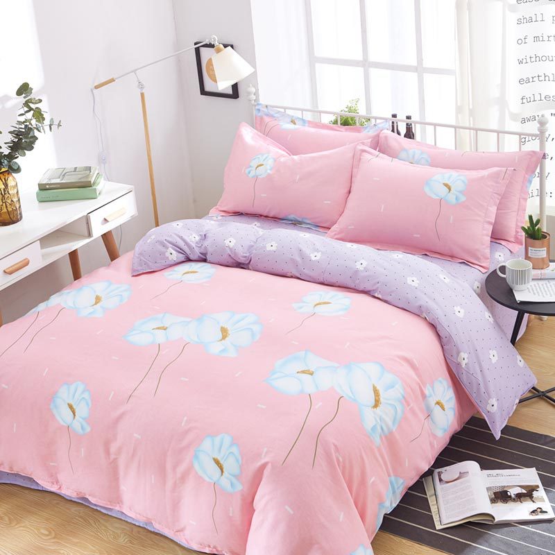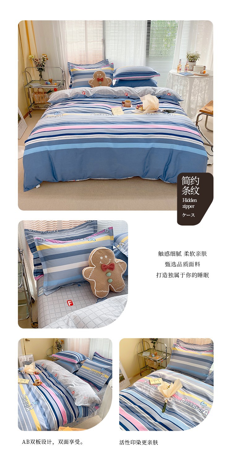 Ins 작은 신선한 면 4 조각 세트 간단한 만화 면 인쇄 학생 기숙사 침대 시트 퀼트 커버 3 피스 세트스토어 가기