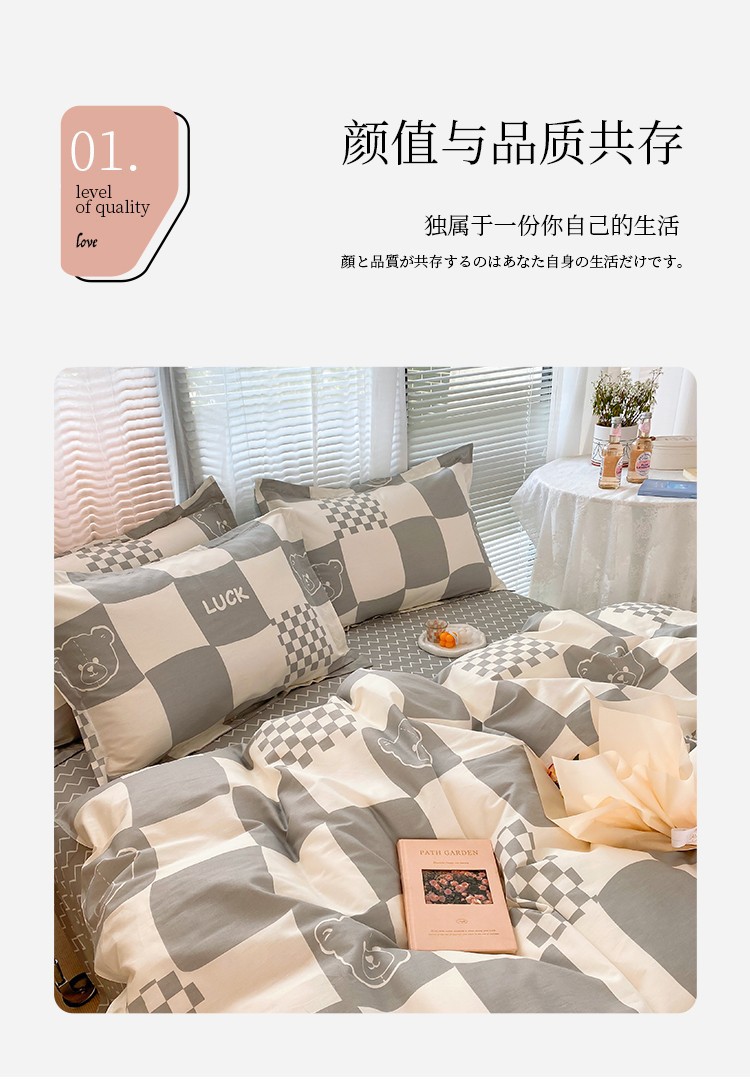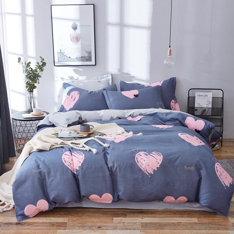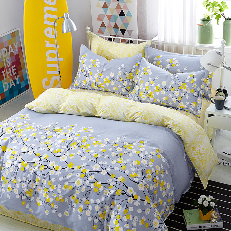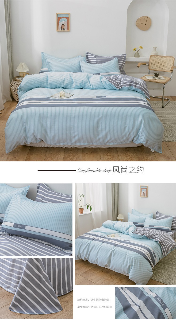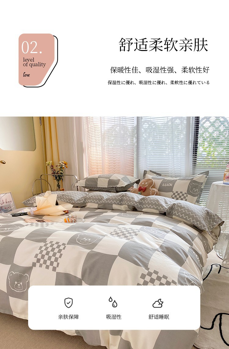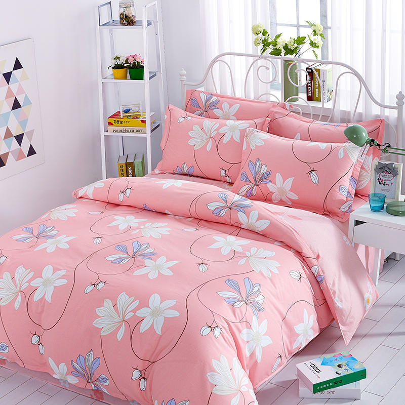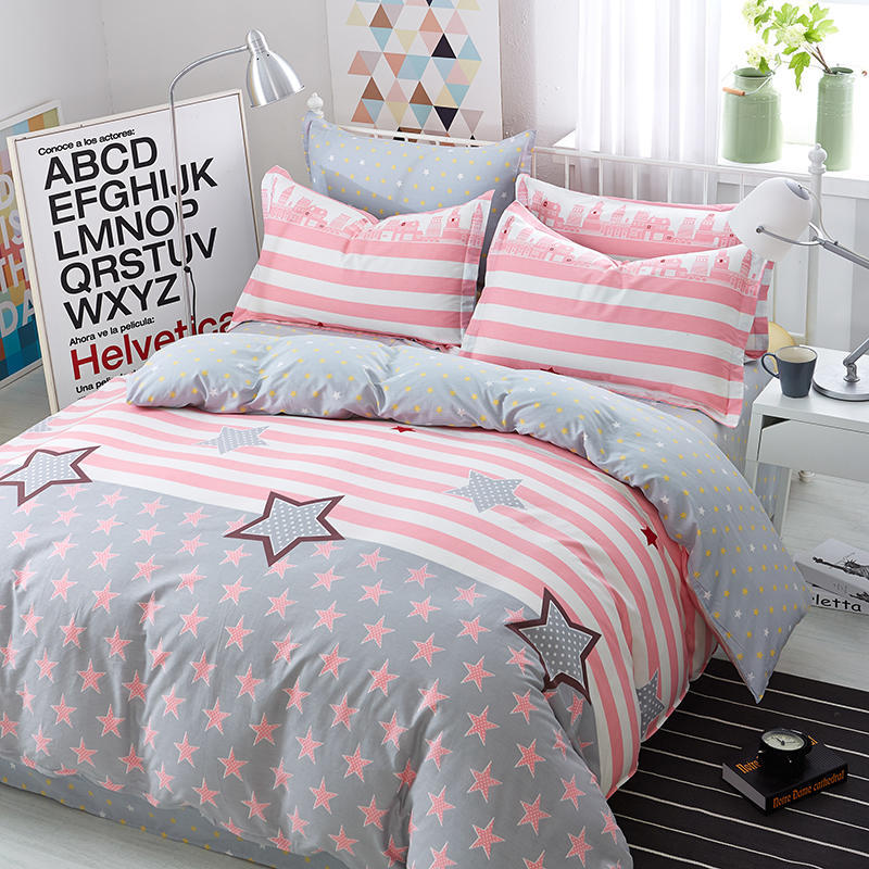 Ins 작은 신선한 면 4 조각 세트 간단한 만화 면 인쇄 학생 기숙사 침대 시트 퀼트 커버 3 피스 세트스토어 가기