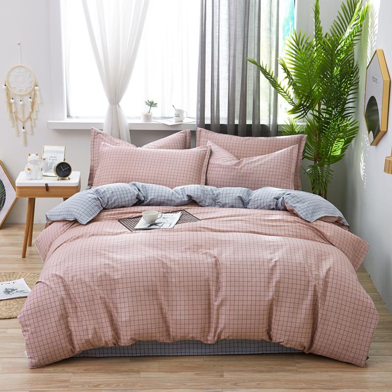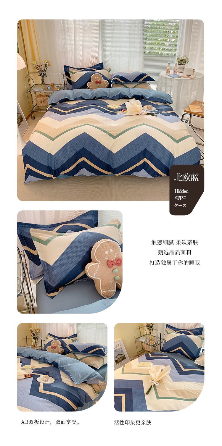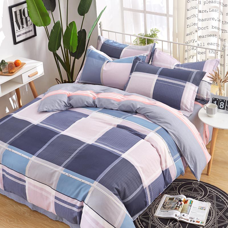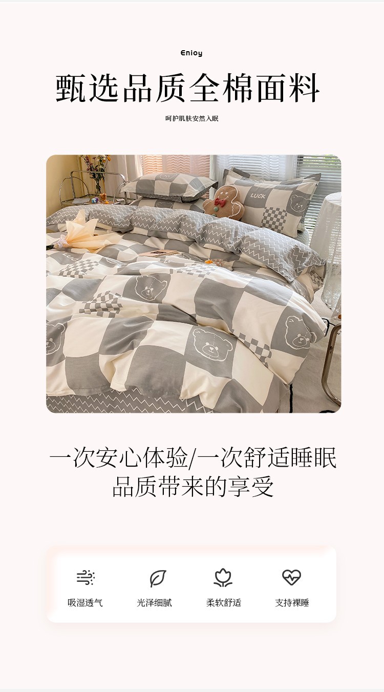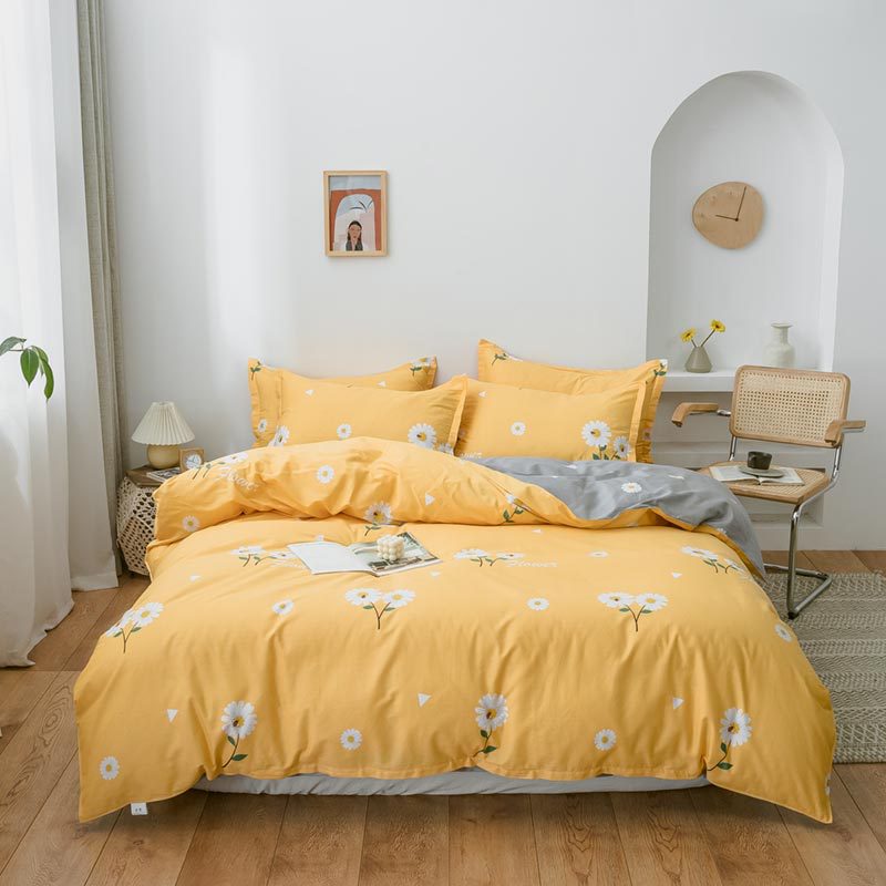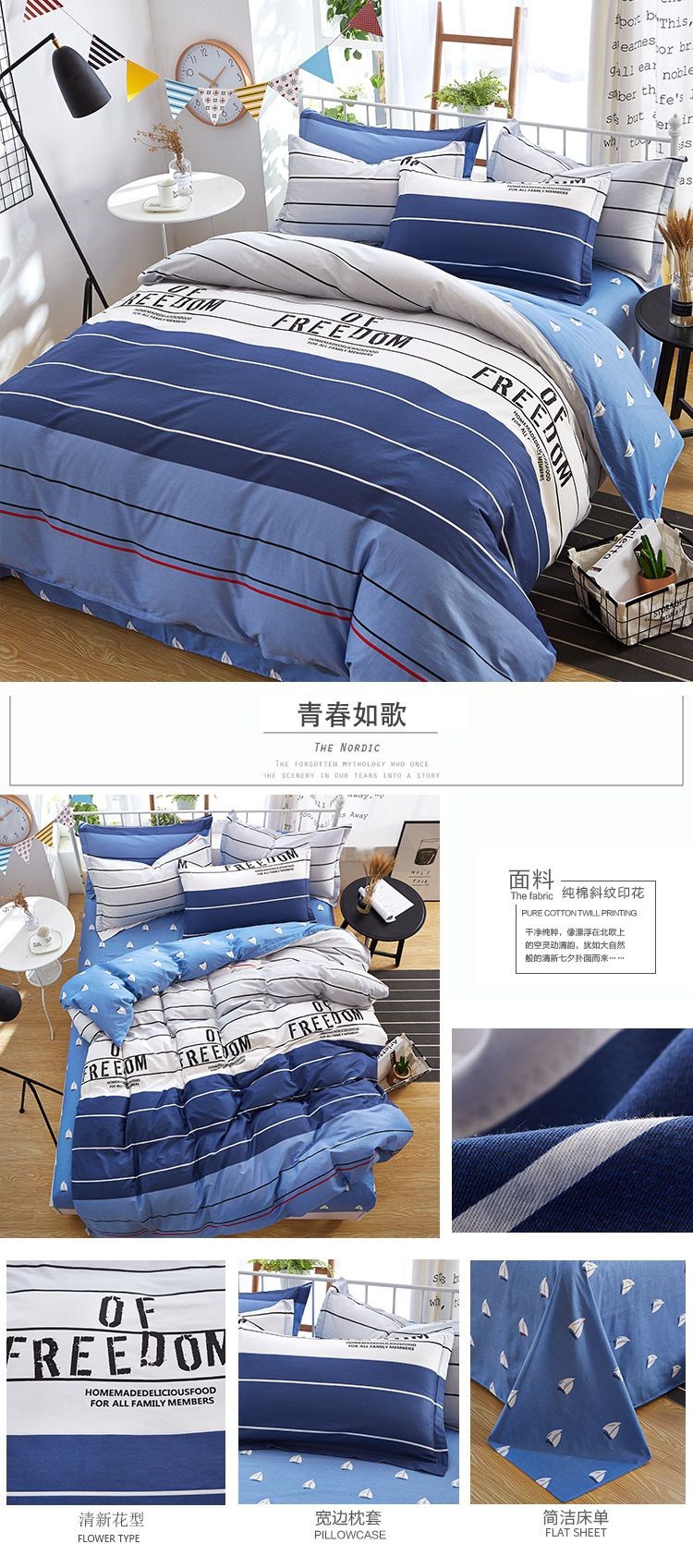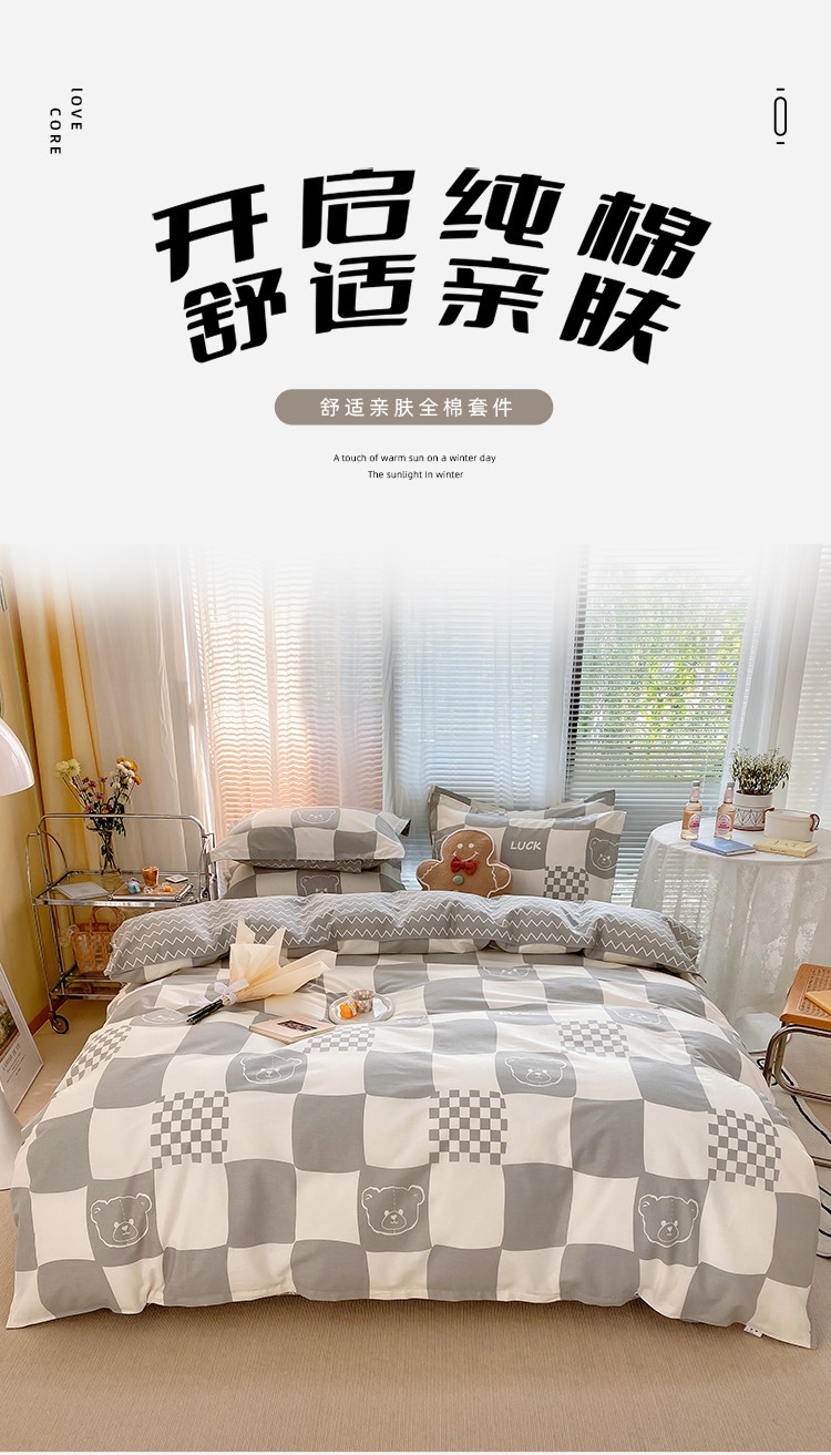 Ins 작은 신선한 면 4 조각 세트 간단한 만화 면 인쇄 학생 기숙사 침대 시트 퀼트 커버 3 피스 세트스토어 가기