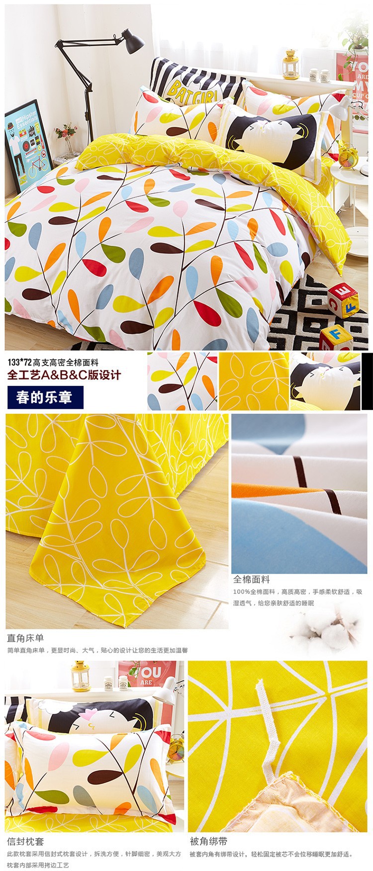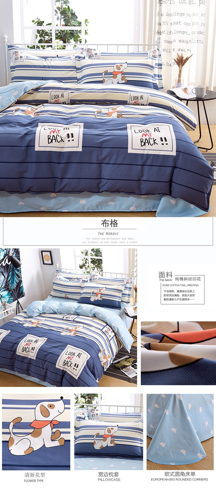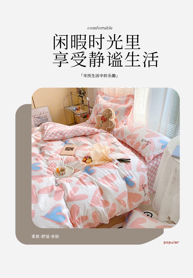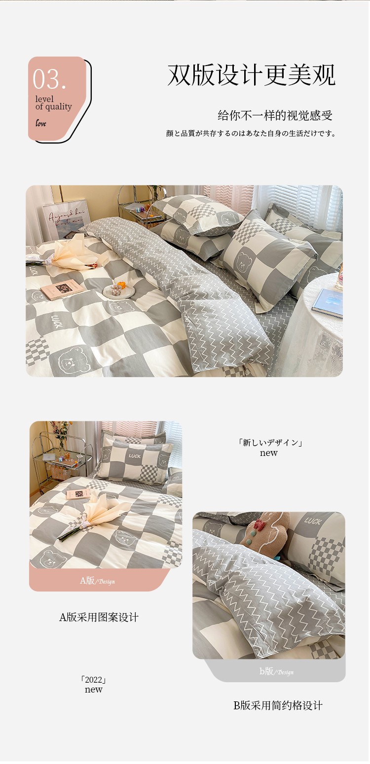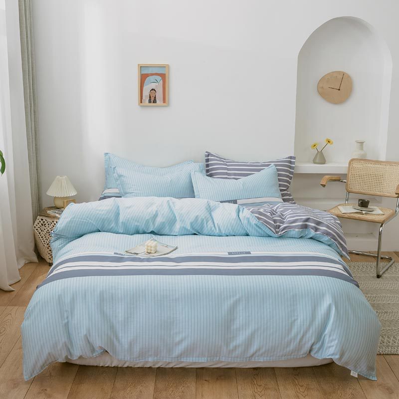 Ins 작은 신선한 면 4 조각 세트 간단한 만화 면 인쇄 학생 기숙사 침대 시트 퀼트 커버 3 피스 세트스토어 가기