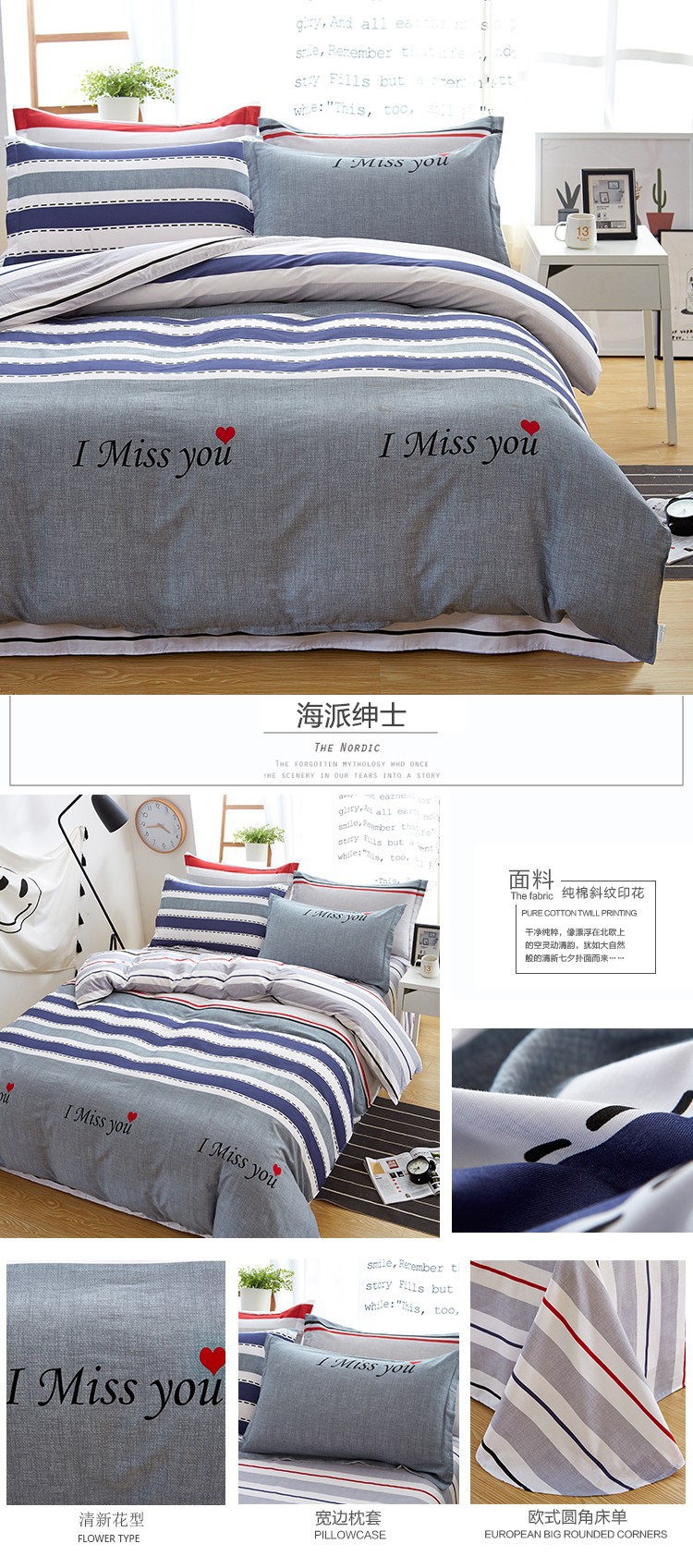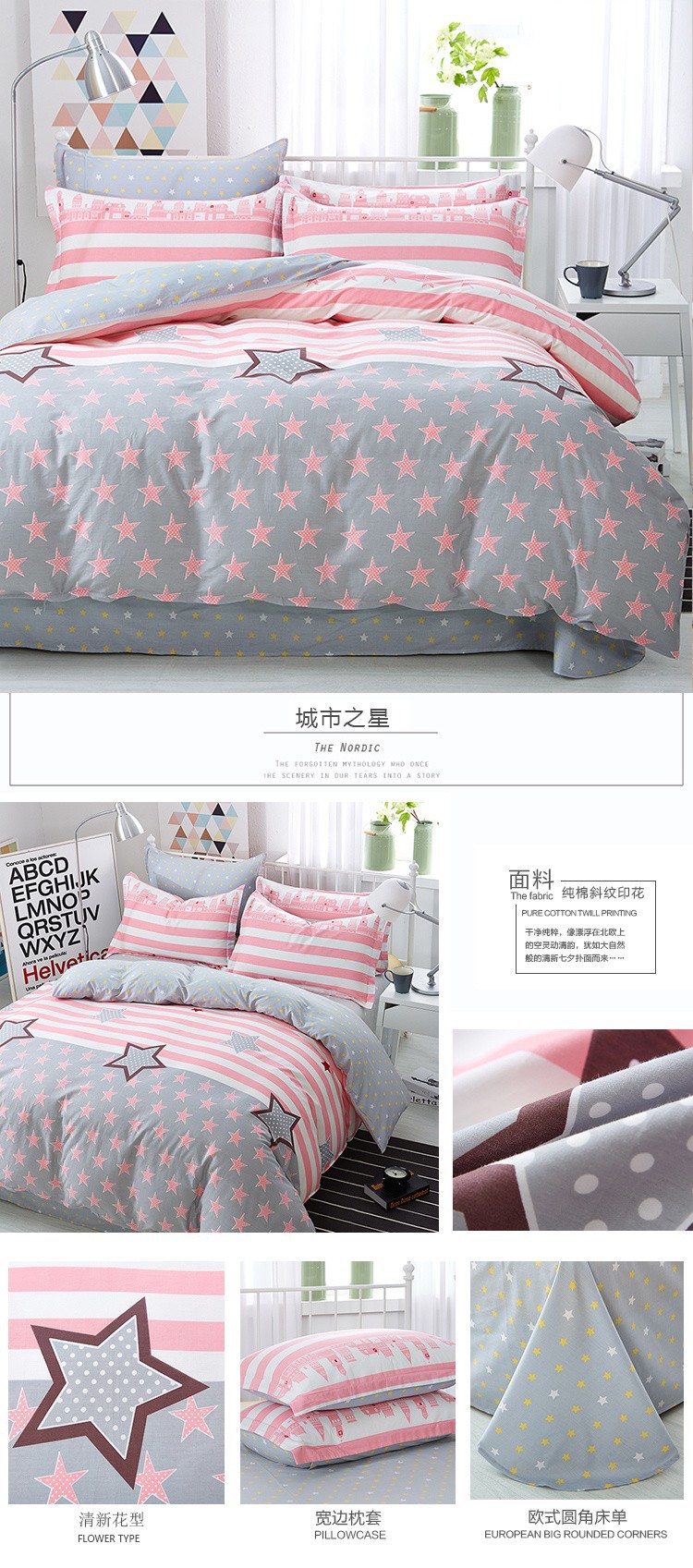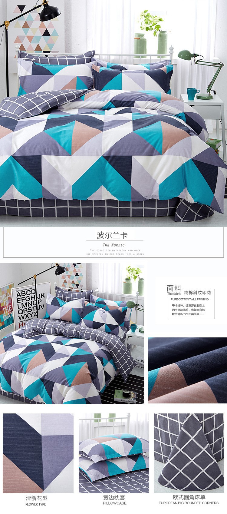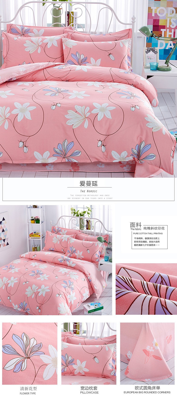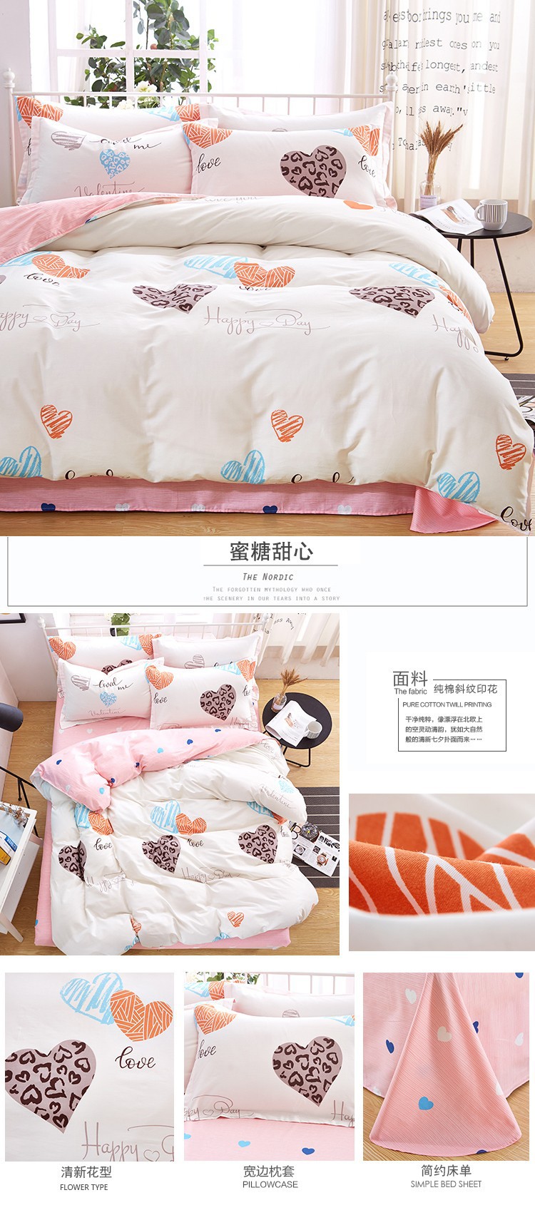 Ins 작은 신선한 면 4 조각 세트 간단한 만화 면 인쇄 학생 기숙사 침대 시트 퀼트 커버 3 피스 세트스토어 가기