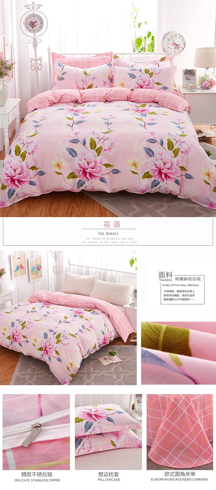 • 1.5m 침대 시트 4장 세트[이불커버 150*200장 230*245 베개커버 48*74]