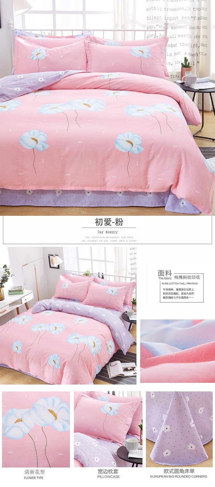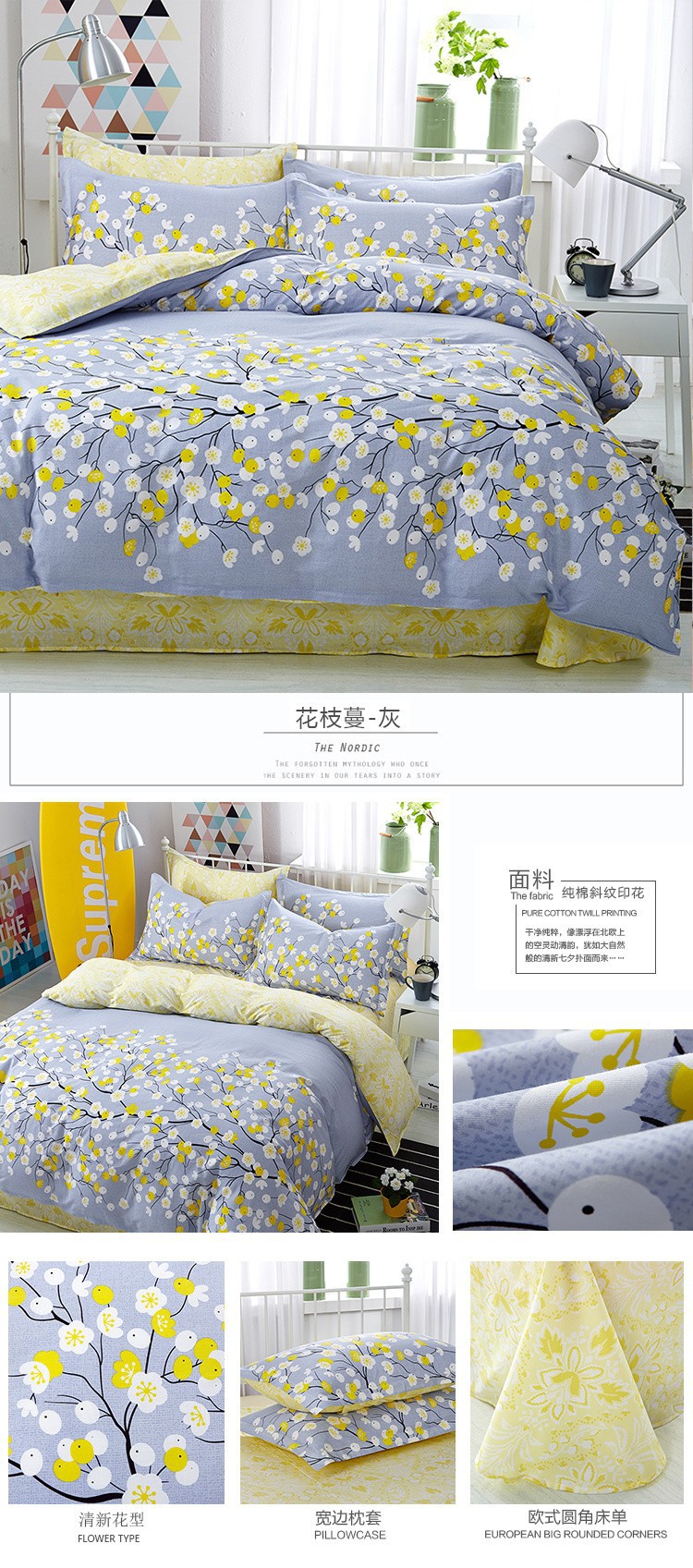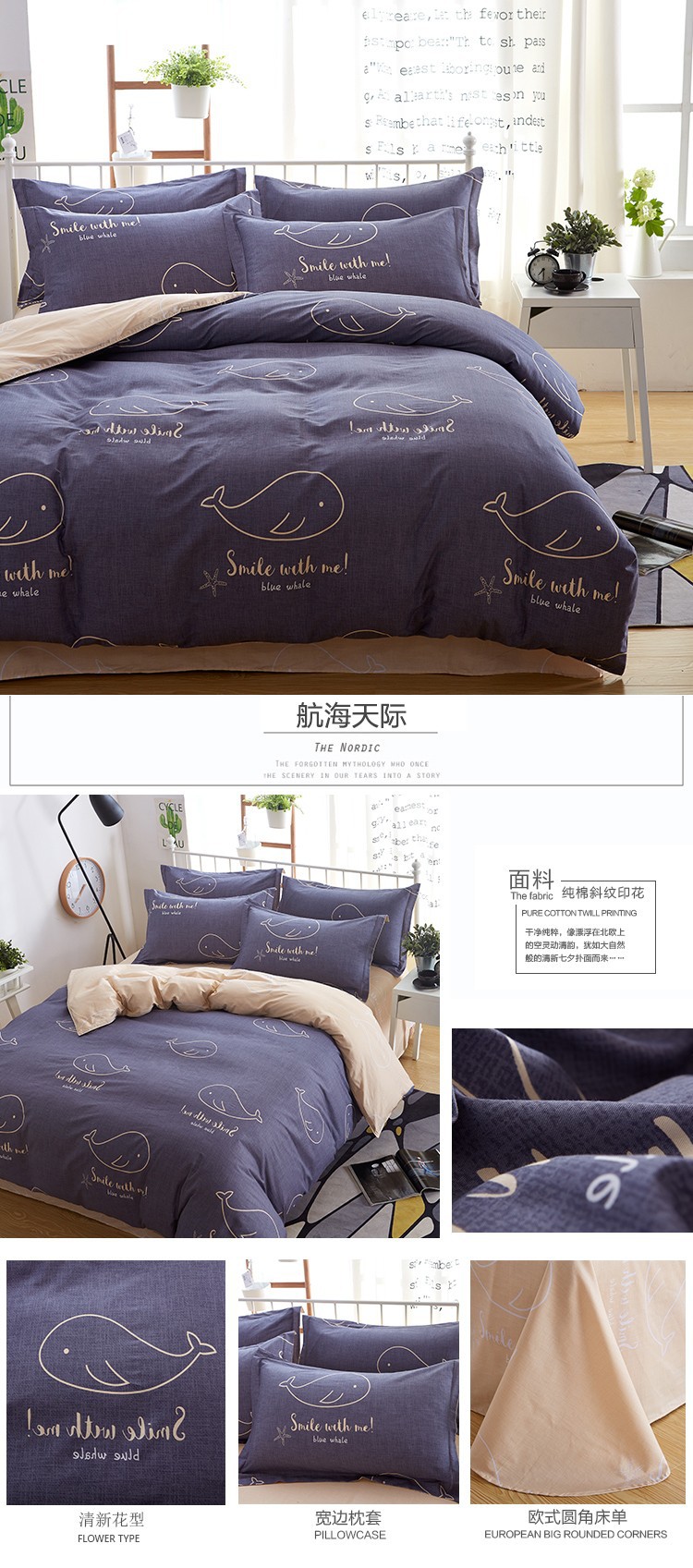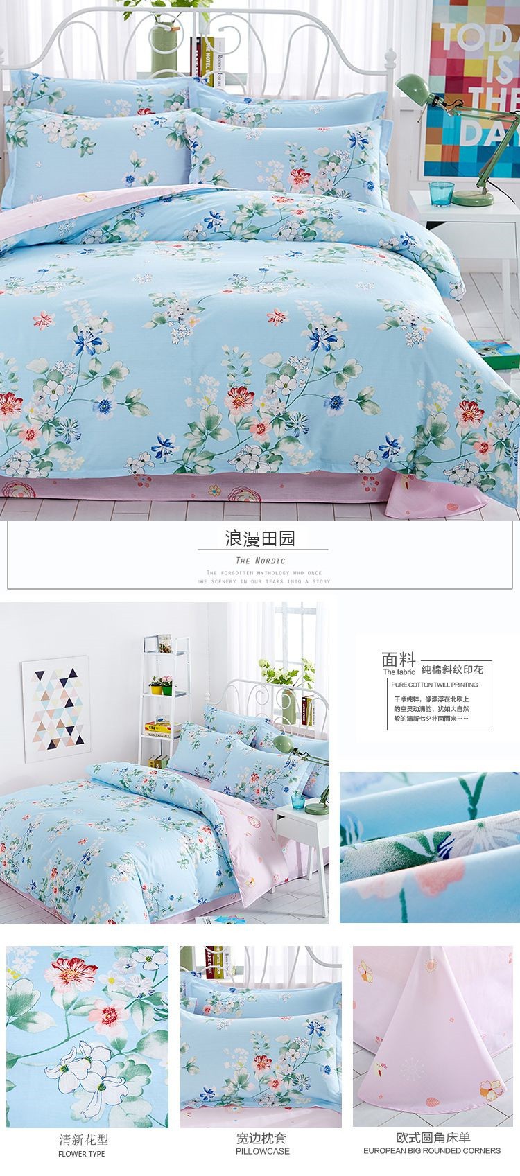 • 1.2m 침대 시트 3종세트[이불커버 150*200장 160*230 베개커버 48*74]