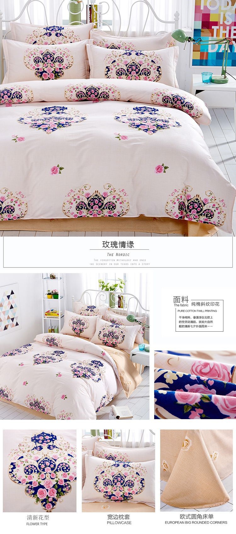 • 2.0m 침대 시트 4장 세트[이불커버 200*230장 230*245 베개커버 48*74]