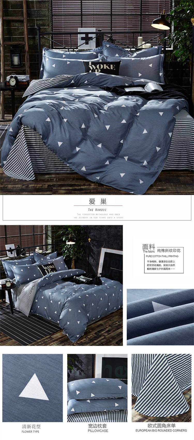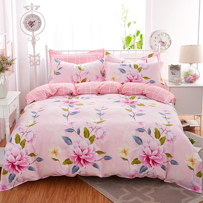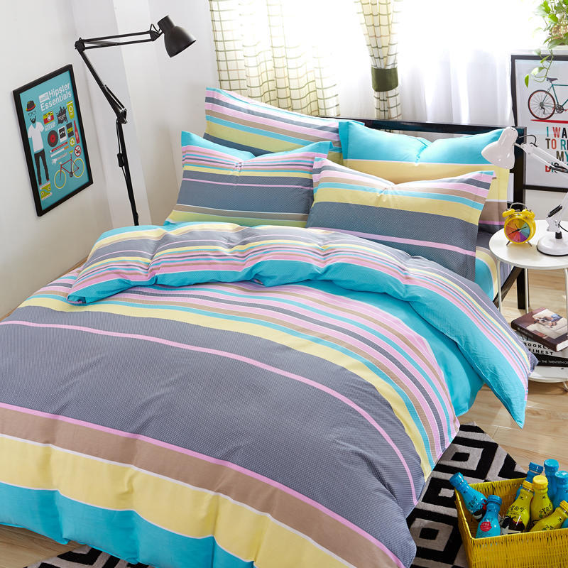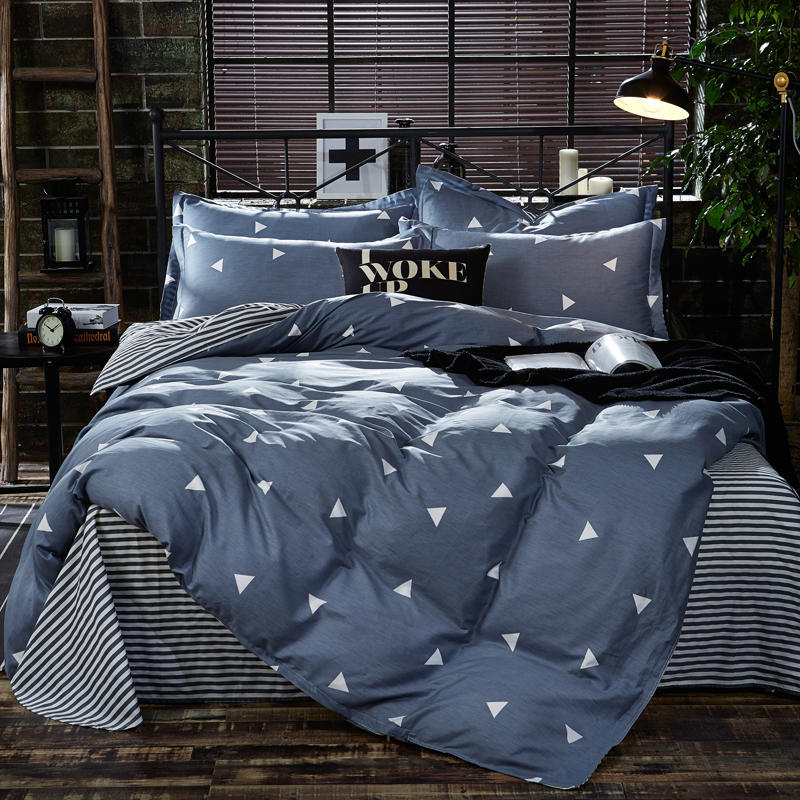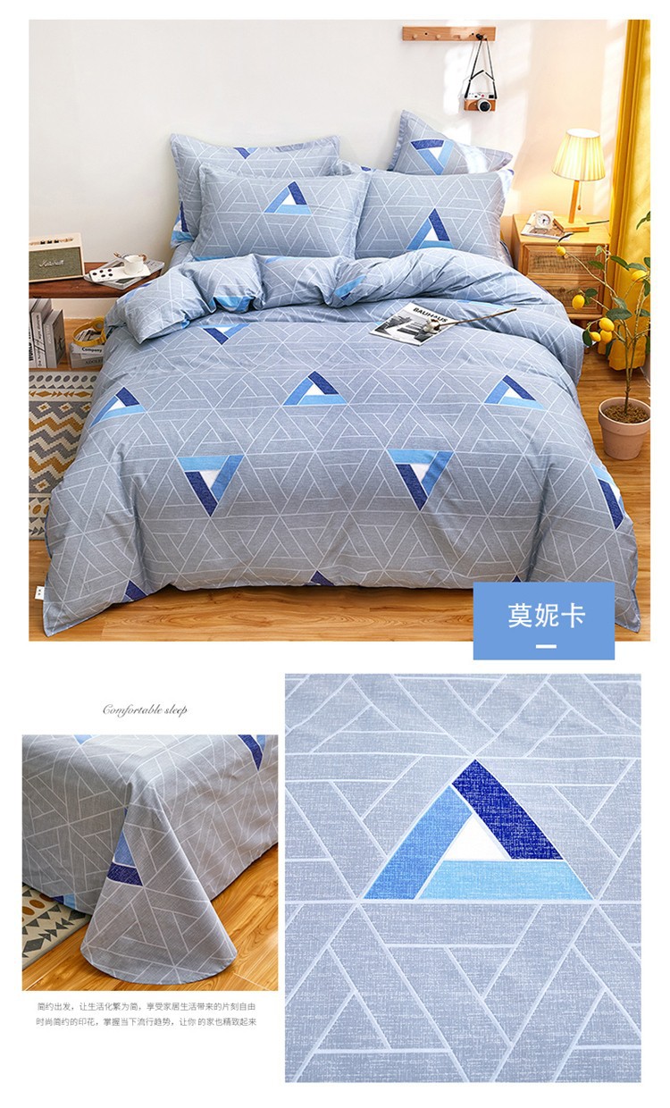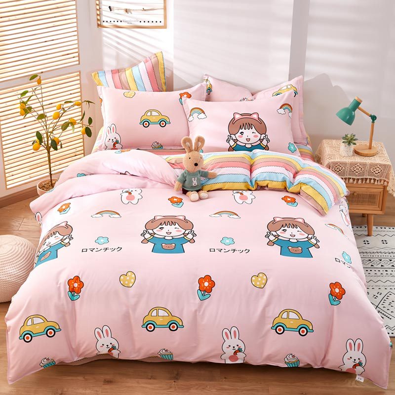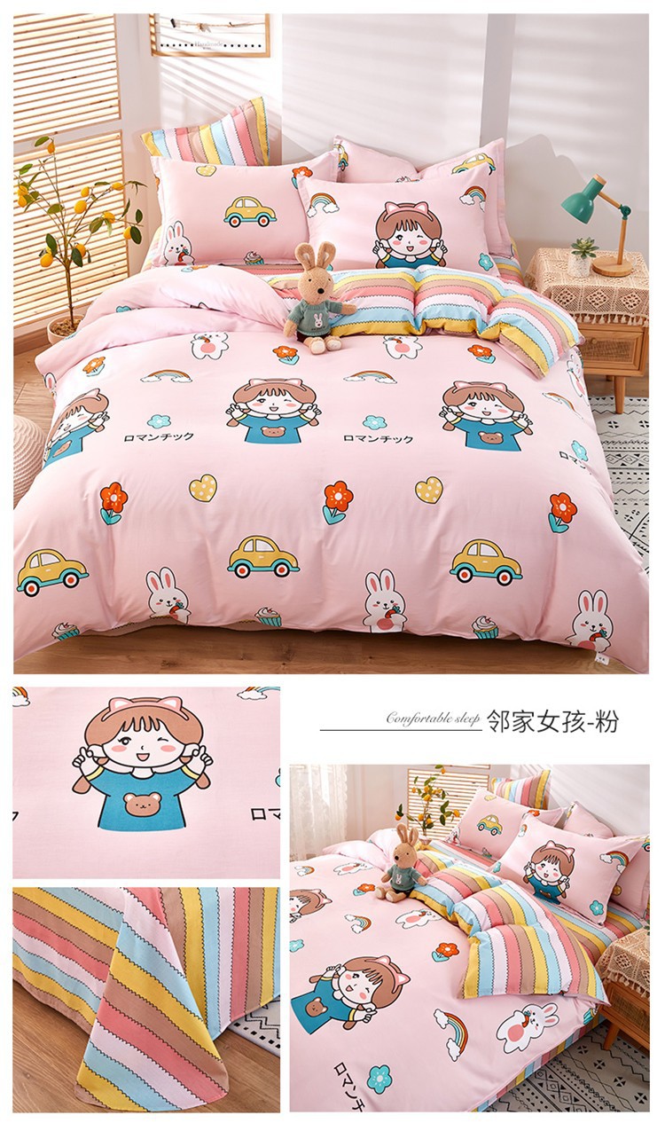 Ins 작은 신선한 면 4 조각 세트 간단한 만화 면 인쇄 학생 기숙사 침대 시트 퀼트 커버 3 피스 세트