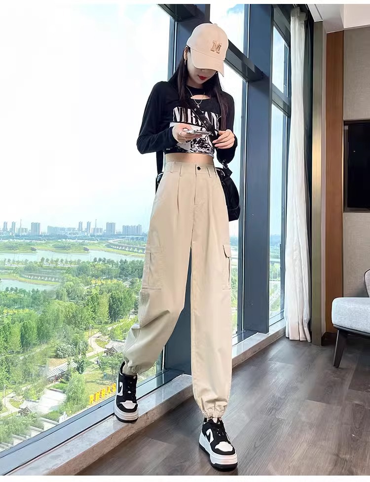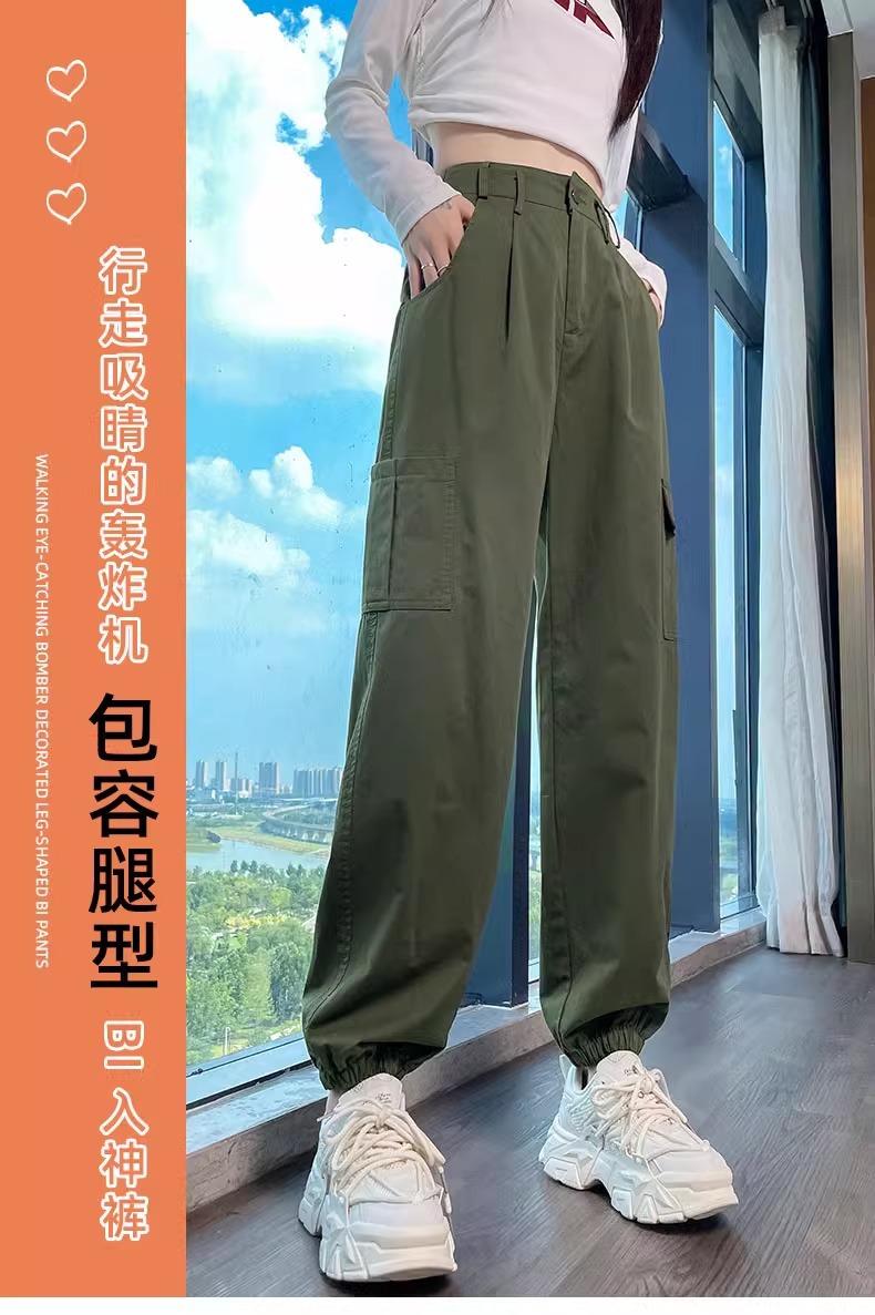 2025 신상 미국 레트로 스타일 작업복 바지 여성용 봄 가을 신상 루즈핏 조거 팬츠 하렘 팬츠 스포츠 등산 긴바지스토어 가기