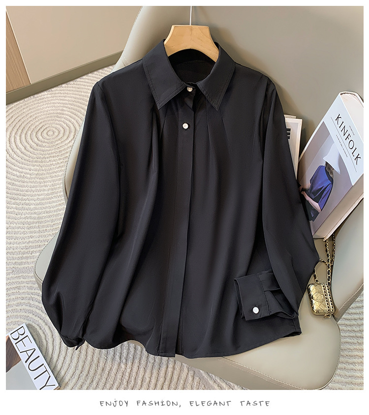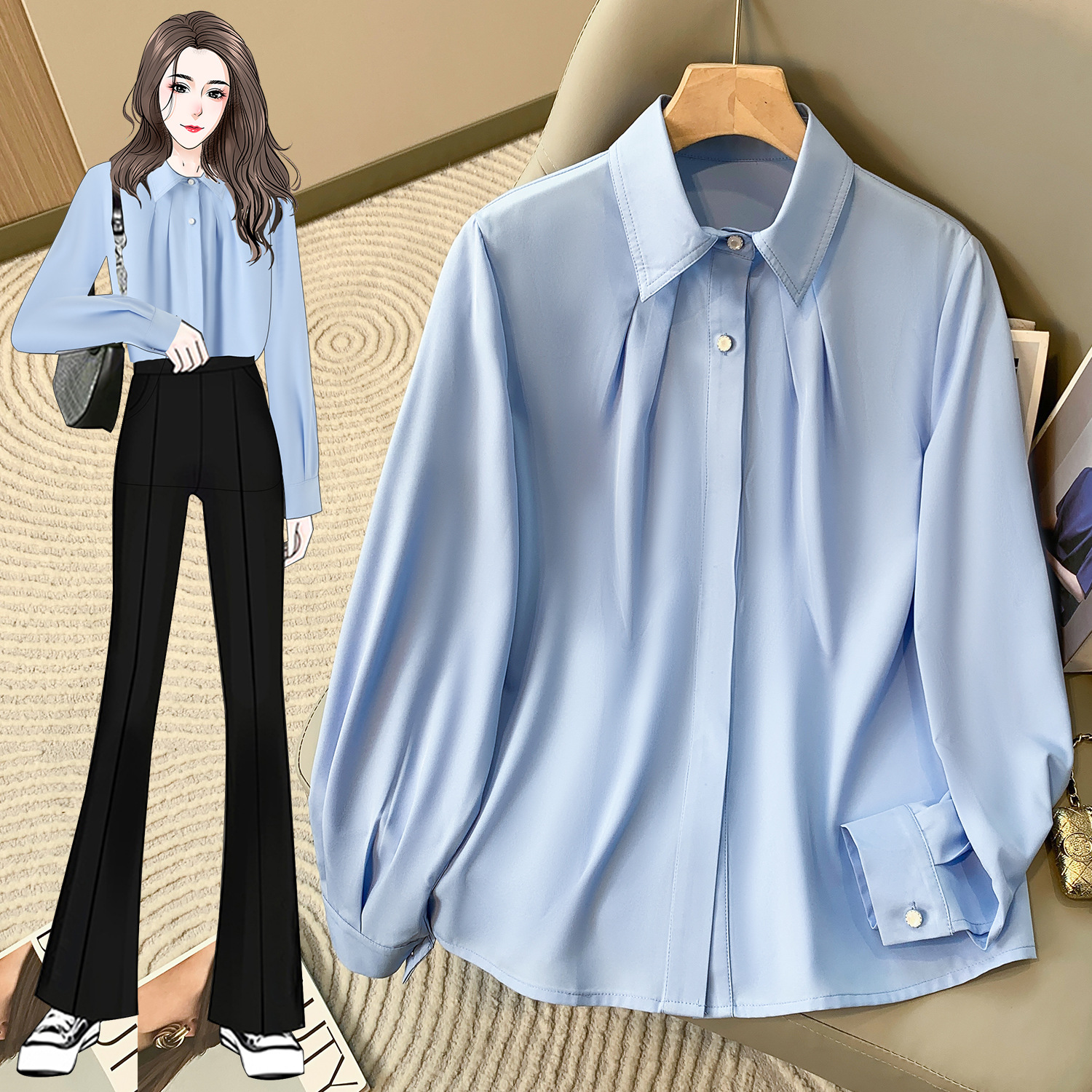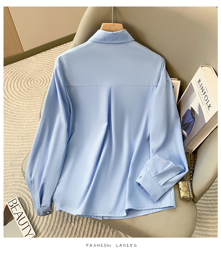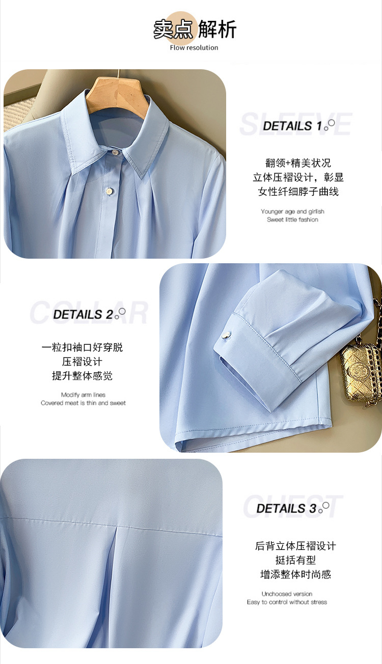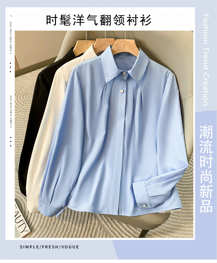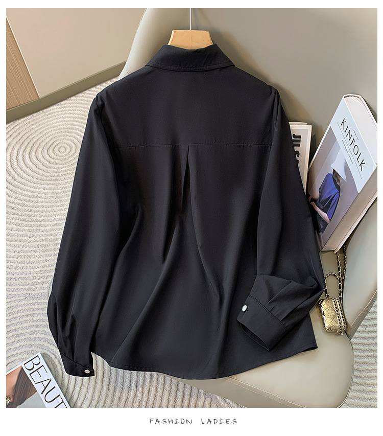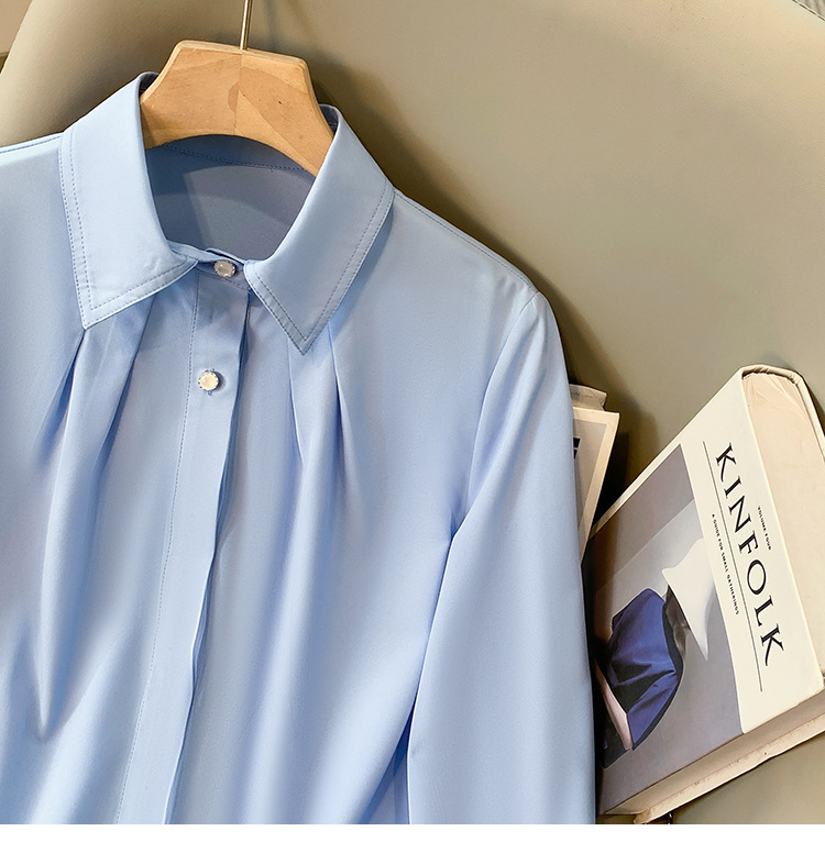 봄 새로운 리얼 샷 셔츠 여성 셔츠 경력 인터뷰 고급 안티 주름 원피스 탑 긴 소매 66607