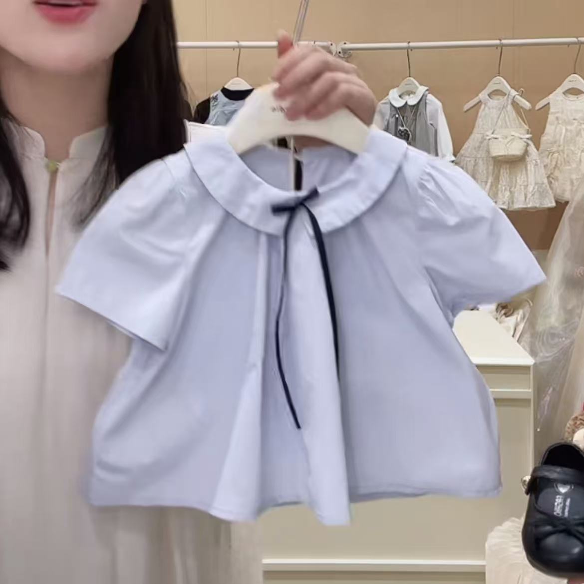 여자 한국식 대학 스타일 주름 치마 세트 2025 봄과 여름 새로운 여성 아기 서양식 반팔 셔츠 투피스 세트스토어 가기