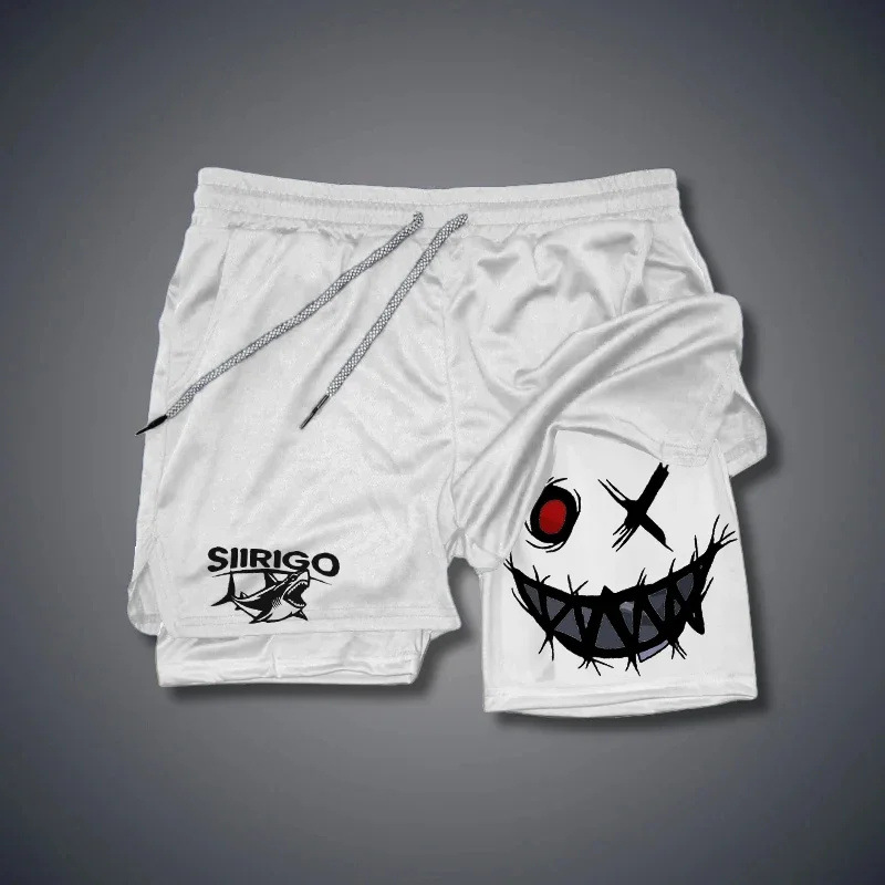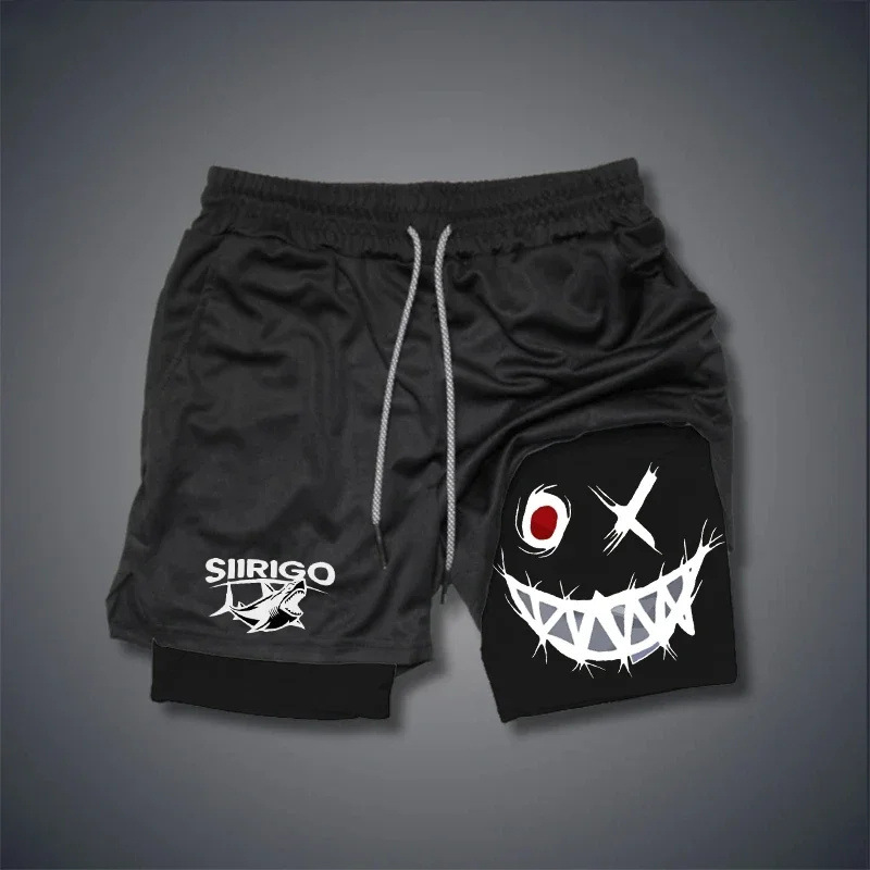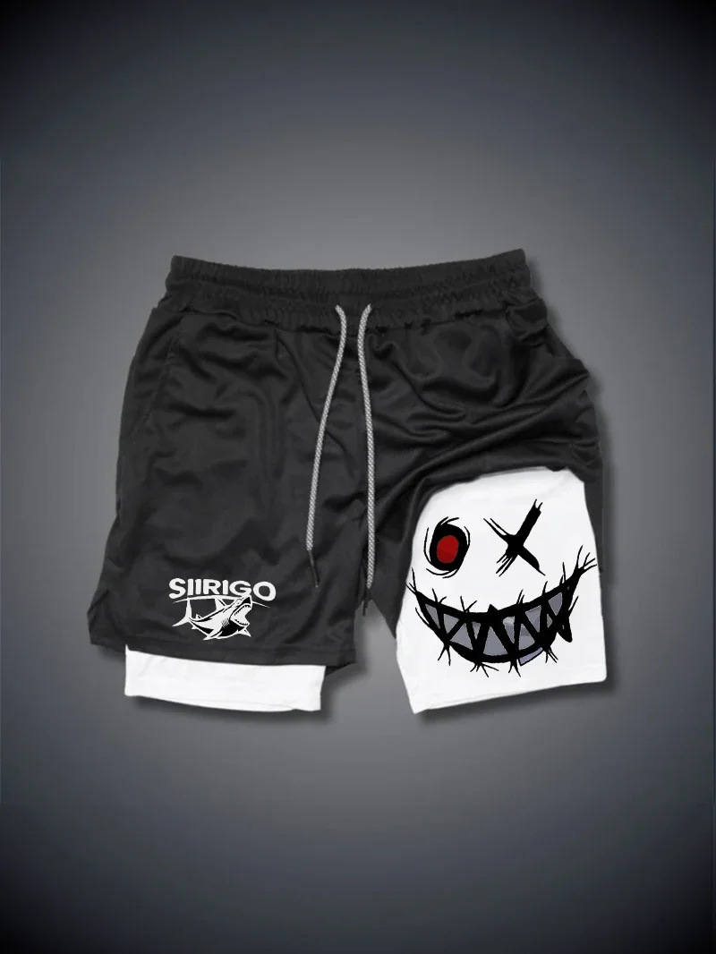 국경 간 뜨거운 판매 여름 휴일 남자의 웃는 인쇄 반바지 더블 레이어 피트니스 홀리데이 캐주얼 비치 캐주얼 트렌디 바지