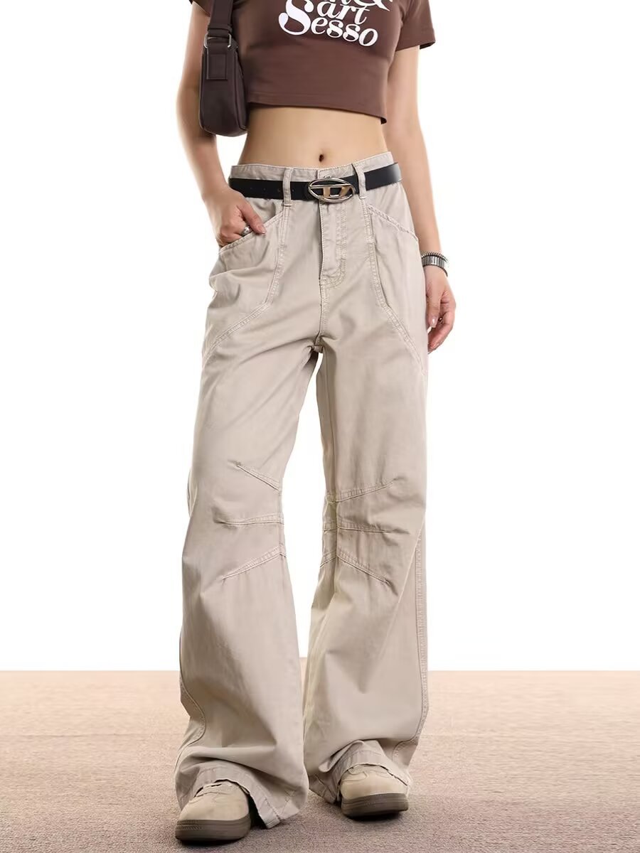 아메리칸 스타일 하이 스트리트 빈티지 바지 남자와 여자의 유행 느슨한 스트레이트 마이크로 혼 캐주얼 낙하산 바지
