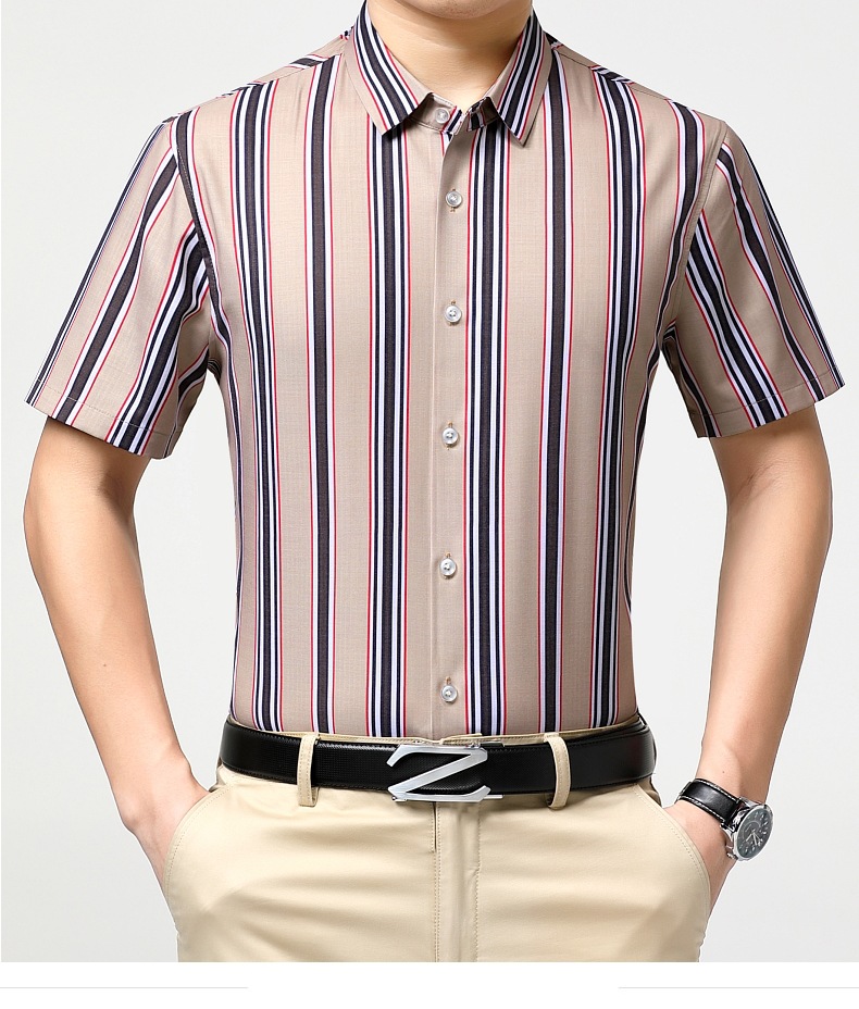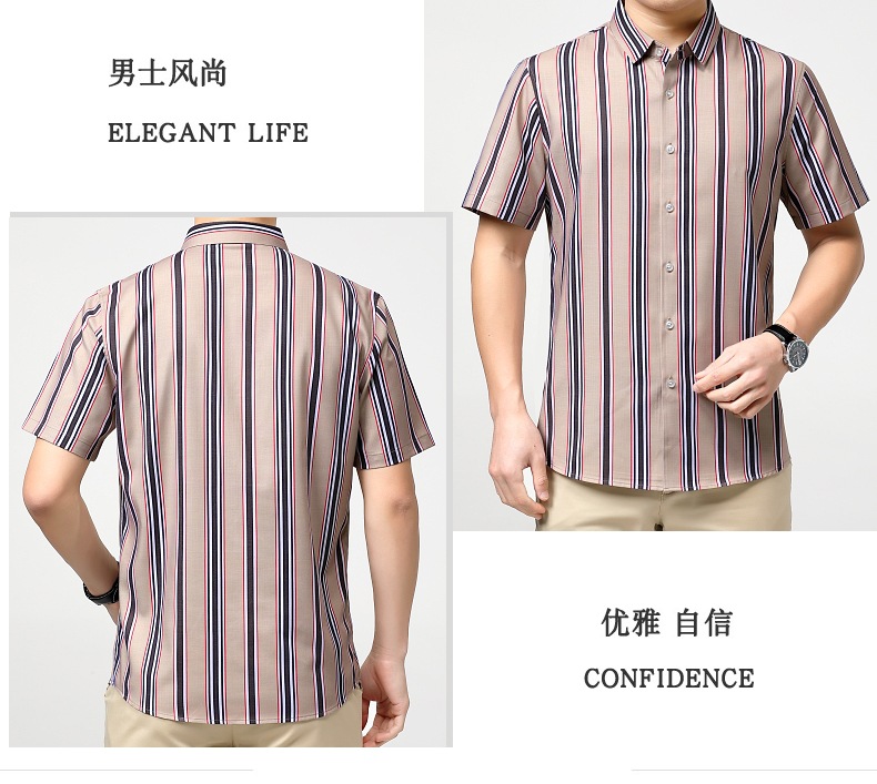 가벼운 럭셔리 브랜드 하이 엔드 뽕나무 실크 남성 셔츠 여름 주름 방지 스트라이프 비즈니스 캐주얼 플러스 사이즈 남성 반팔 셔츠