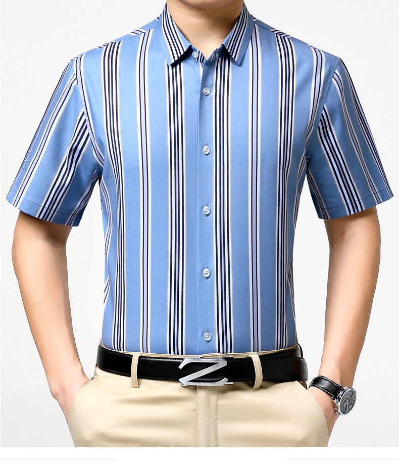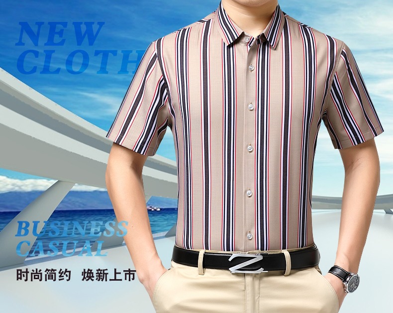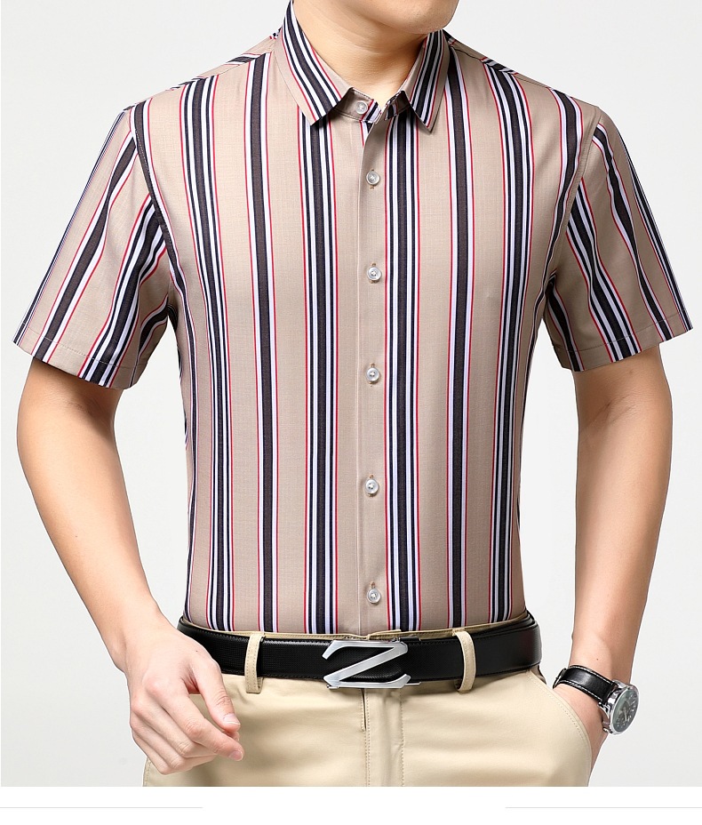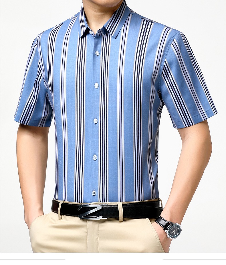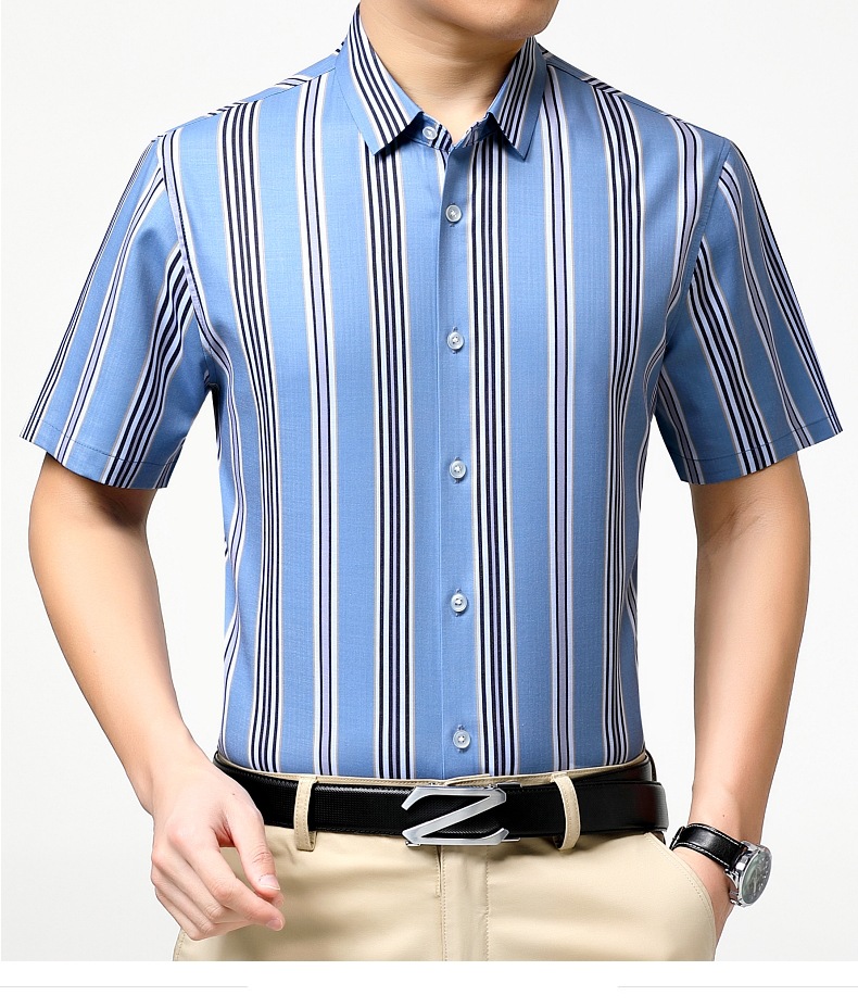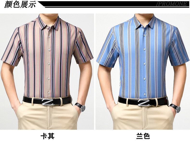 가벼운 럭셔리 브랜드 하이 엔드 뽕나무 실크 남성 셔츠 여름 주름 방지 스트라이프 비즈니스 캐주얼 플러스 사이즈 남성 반팔 셔츠스토어 가기
