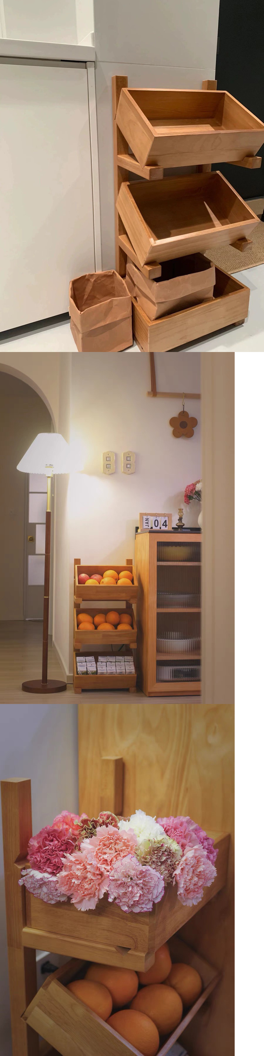 단단한 나무 다층 저장 랙 가정용 거실 주방 야채 스낵 디스플레이 저장 나무 저장 랙