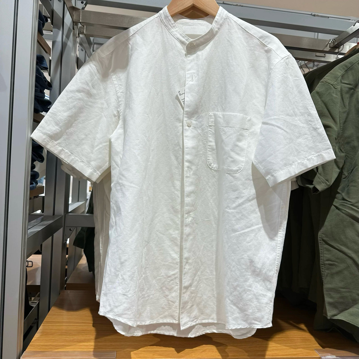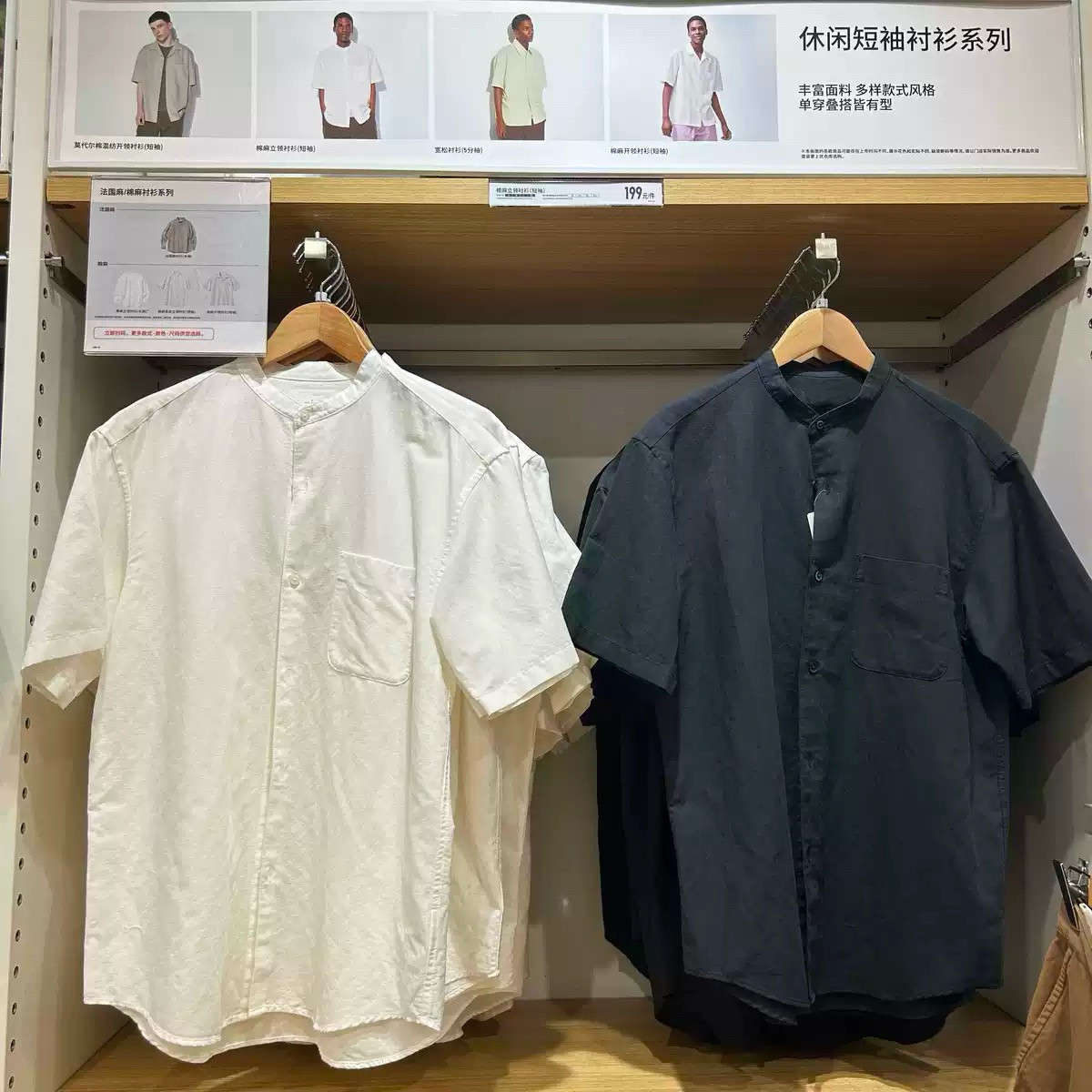 일본 싱글 남녀 2025 여름면과 린넨 수직 칼라 셔츠 반팔 리넨 캐주얼 루즈 셔츠 474528스토어 가기