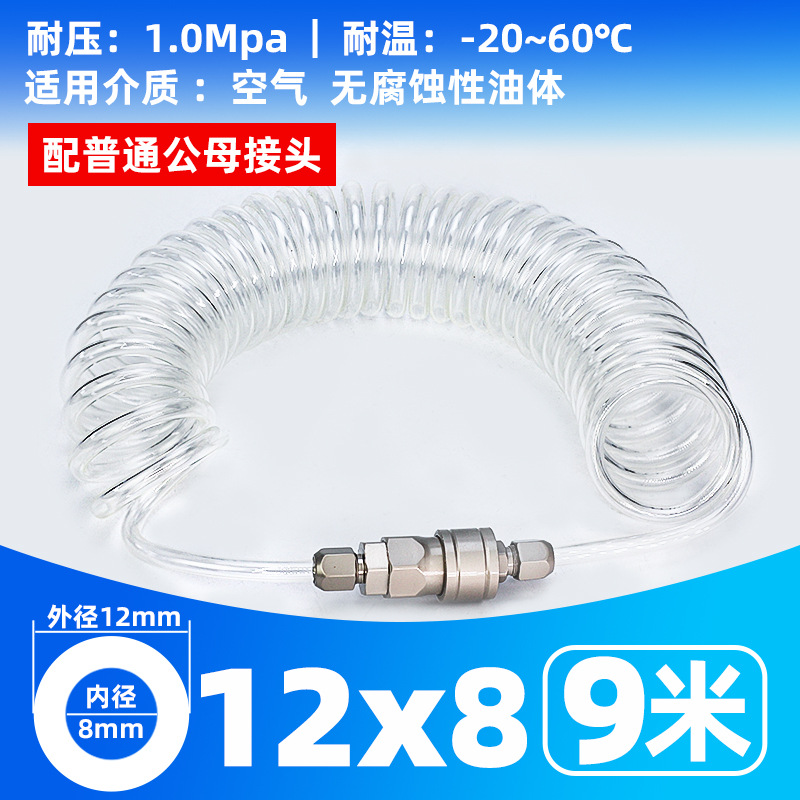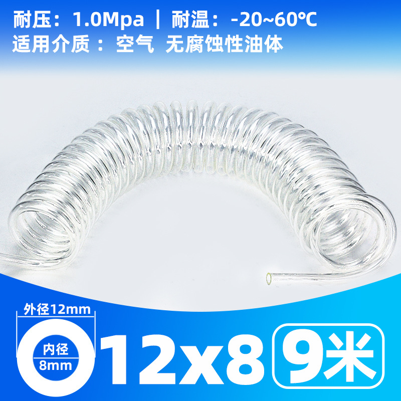 • 투명 스프링 튜브 12X8- 9m [커넥터 없음]