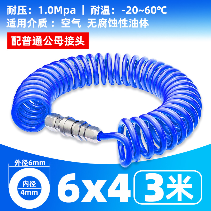• 블루 스프링 튜브 6X4- 3m [커넥터 없음]