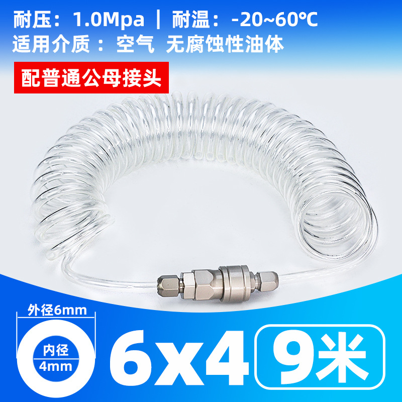 • 투명 스프링 튜브 6X4- 9m [커넥터 포함]