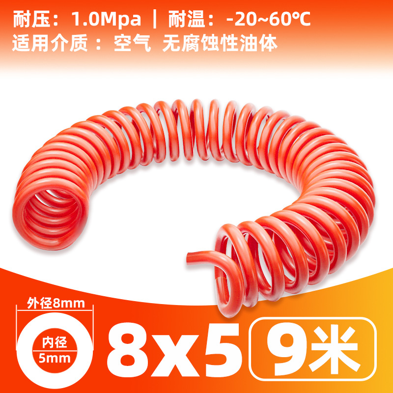 • 빨간색 스프링 튜브 8X5- 9m [커넥터 없음]