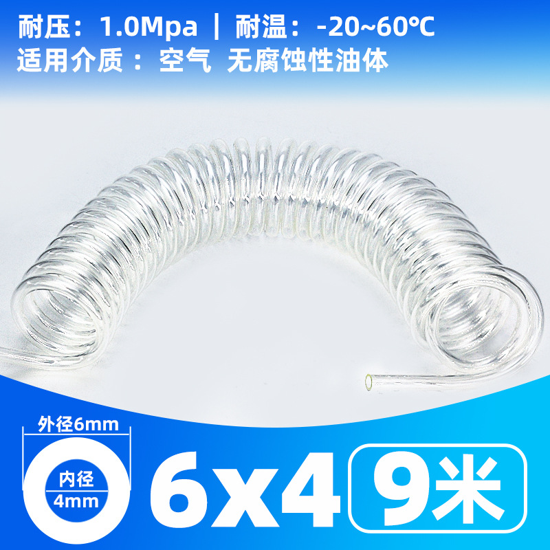 • 투명 스프링 튜브 6X4- 9m [커넥터 없음]