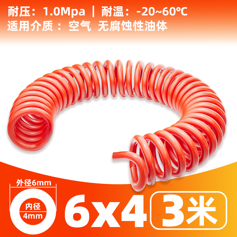 • 빨간색 스프링 튜브 6X4- 3m [커넥터 없음]
