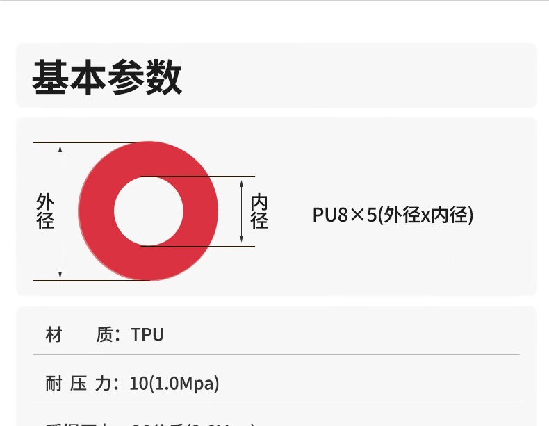 • 빨간색 스프링 튜브 8X5- 3m [커넥터 없음]