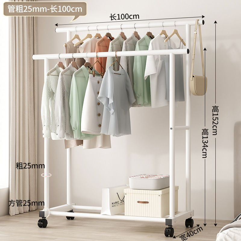 • 1.5m 화이트⭐25튜브 이중 극 이중층 두꺼운 풀리⭐이중 옷걸이♥적재 용량 200