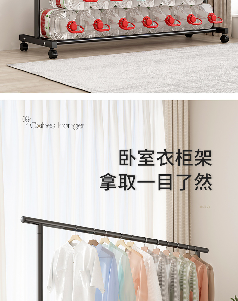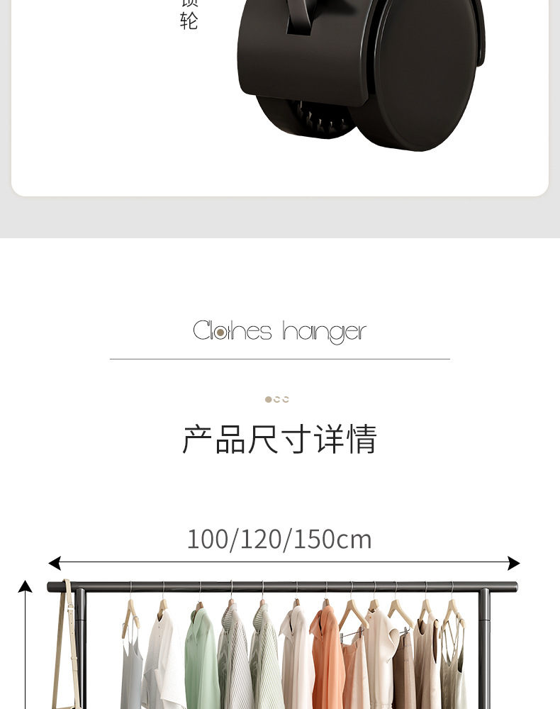 • 1.5m 블랙⭐25튜브 이중 극 두꺼운 풀리⭐이중 옷걸이♥적재 용량은 200파운드입니다.