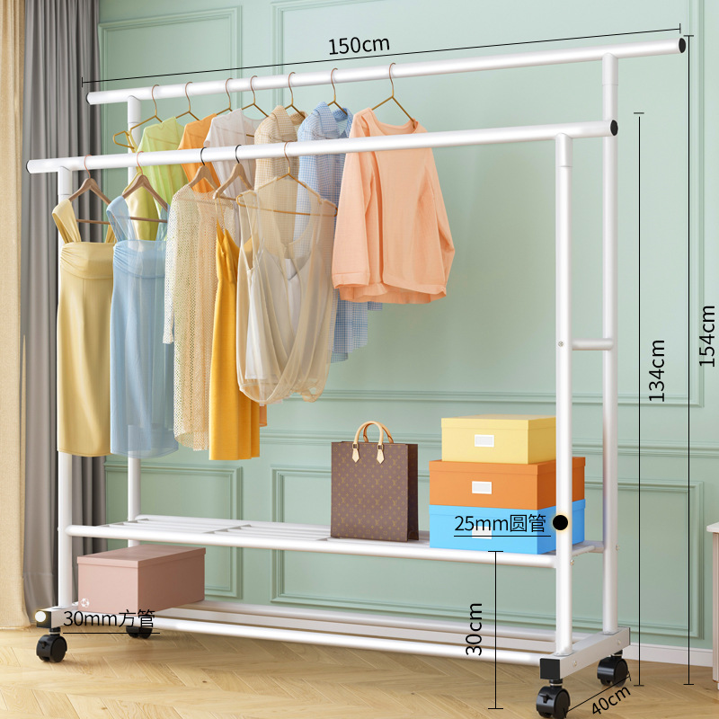 • 1.5m 화이트⭐25튜브 이중 극 두꺼운 풀리⭐이중 옷걸이♥적재 용량은 200파운드입니다.