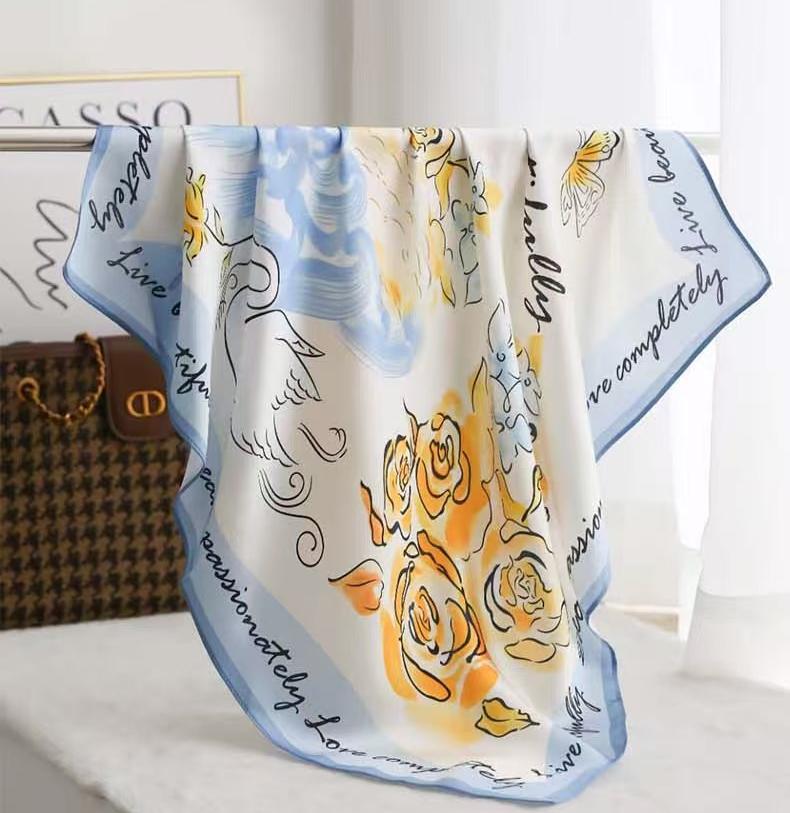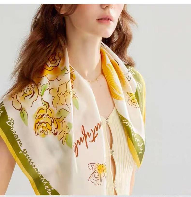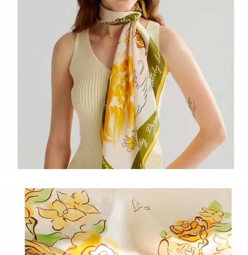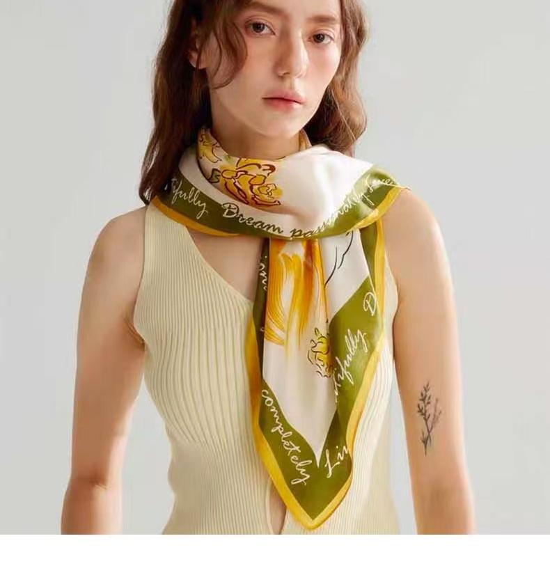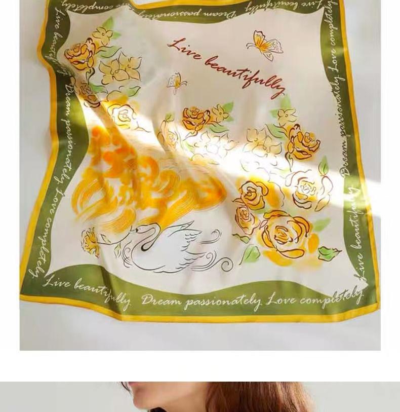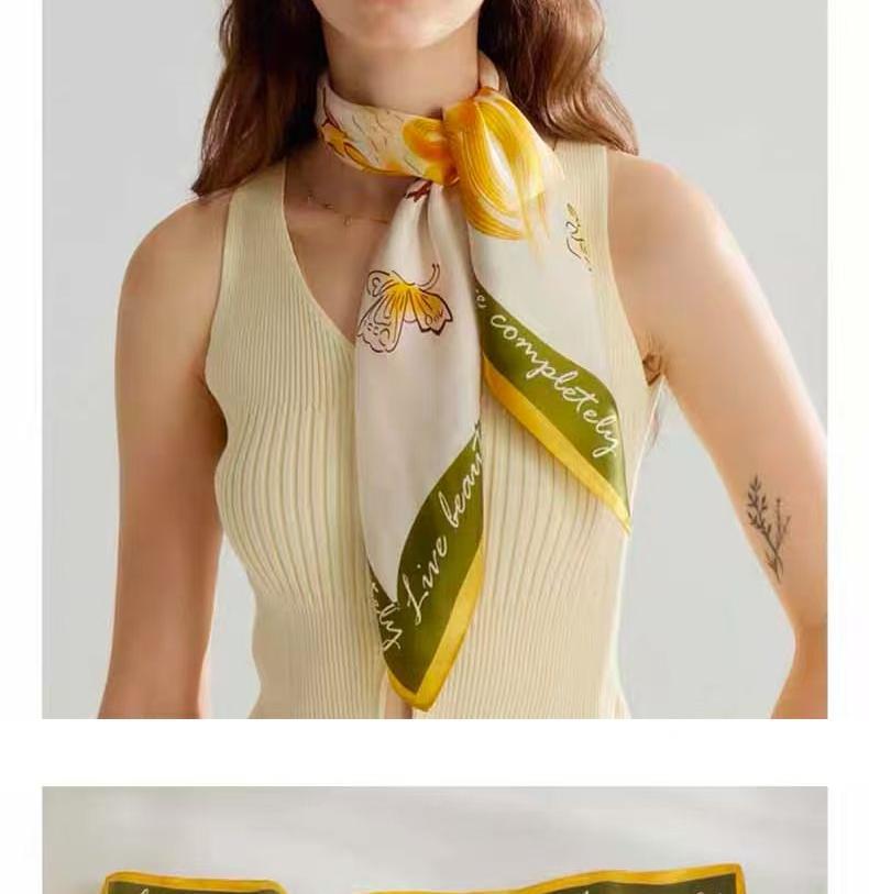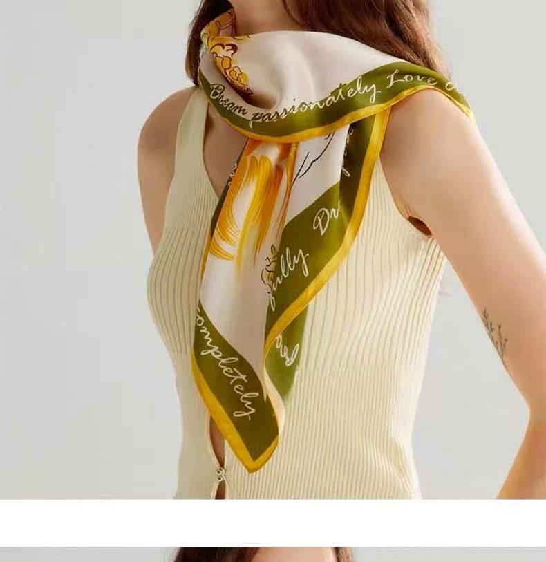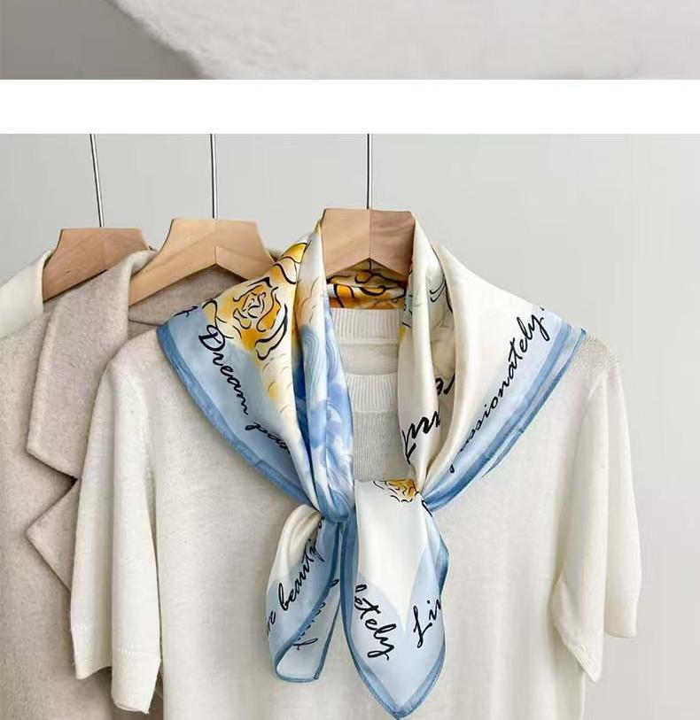 2025 한국 스타일 새로운 봄과 여름 실크 작은 광장 스카프 여성 단색 65cm 스카프 장식 헤어 벨트 작은 실크 스카프