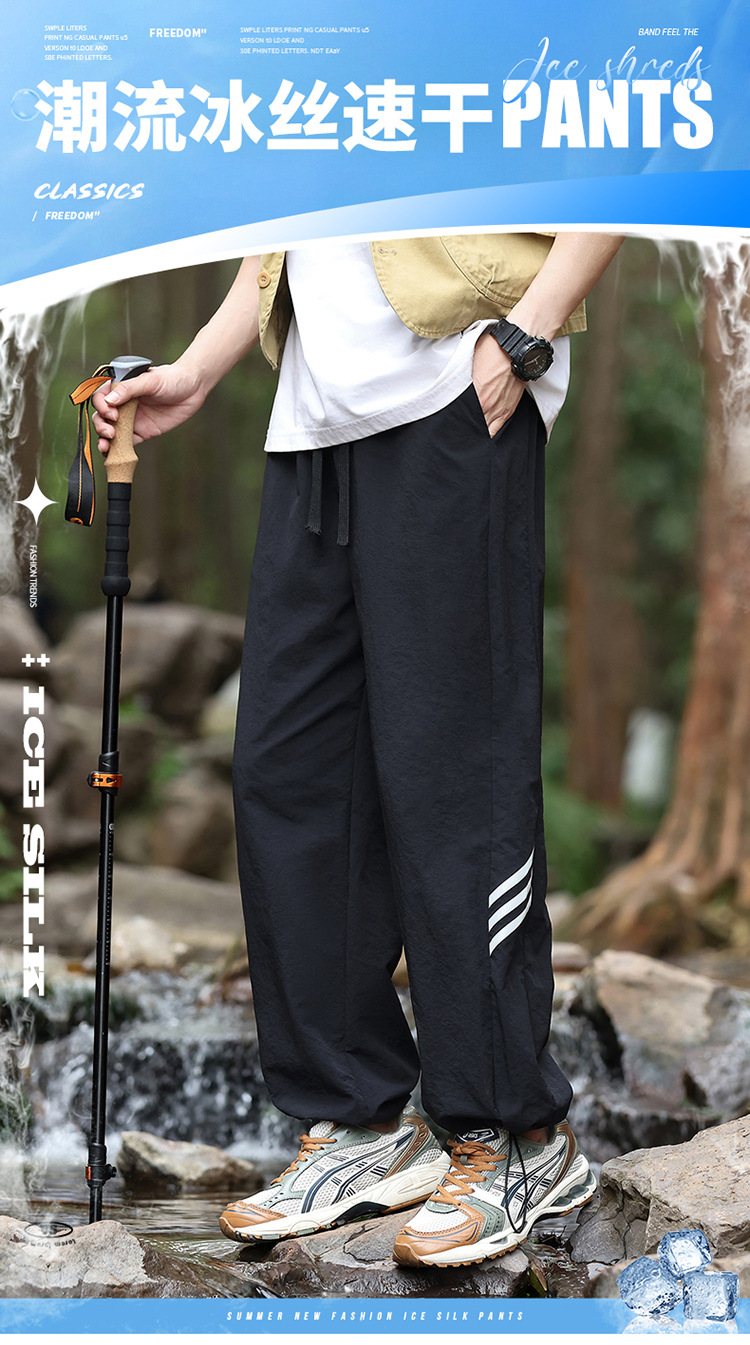 야외 작업복 캐주얼 바지 남자 봄과 여름 스포츠 아이스 실크 트렌디 브랜드 새로운 아이스 센스 남자 바지 느슨한 올 매치 홍콩 스타일스토어 가기