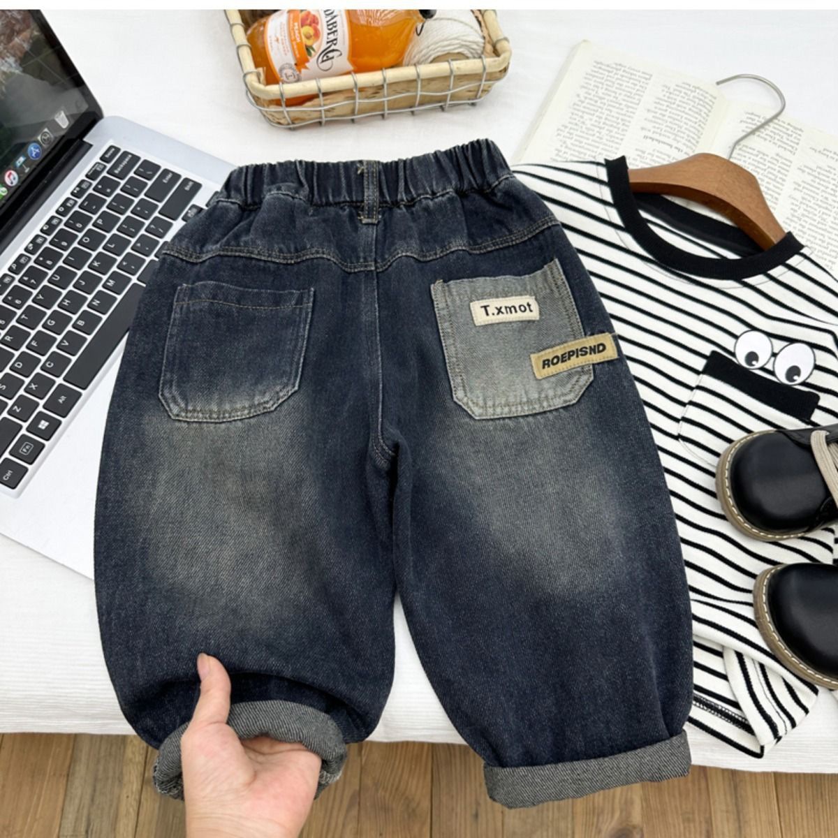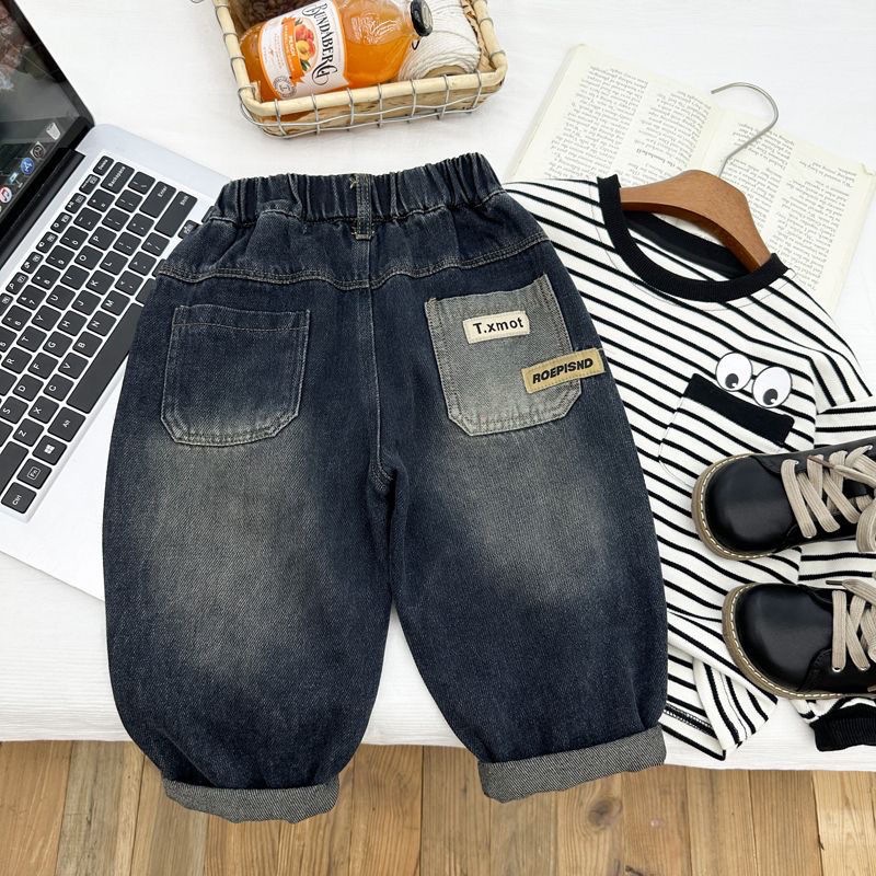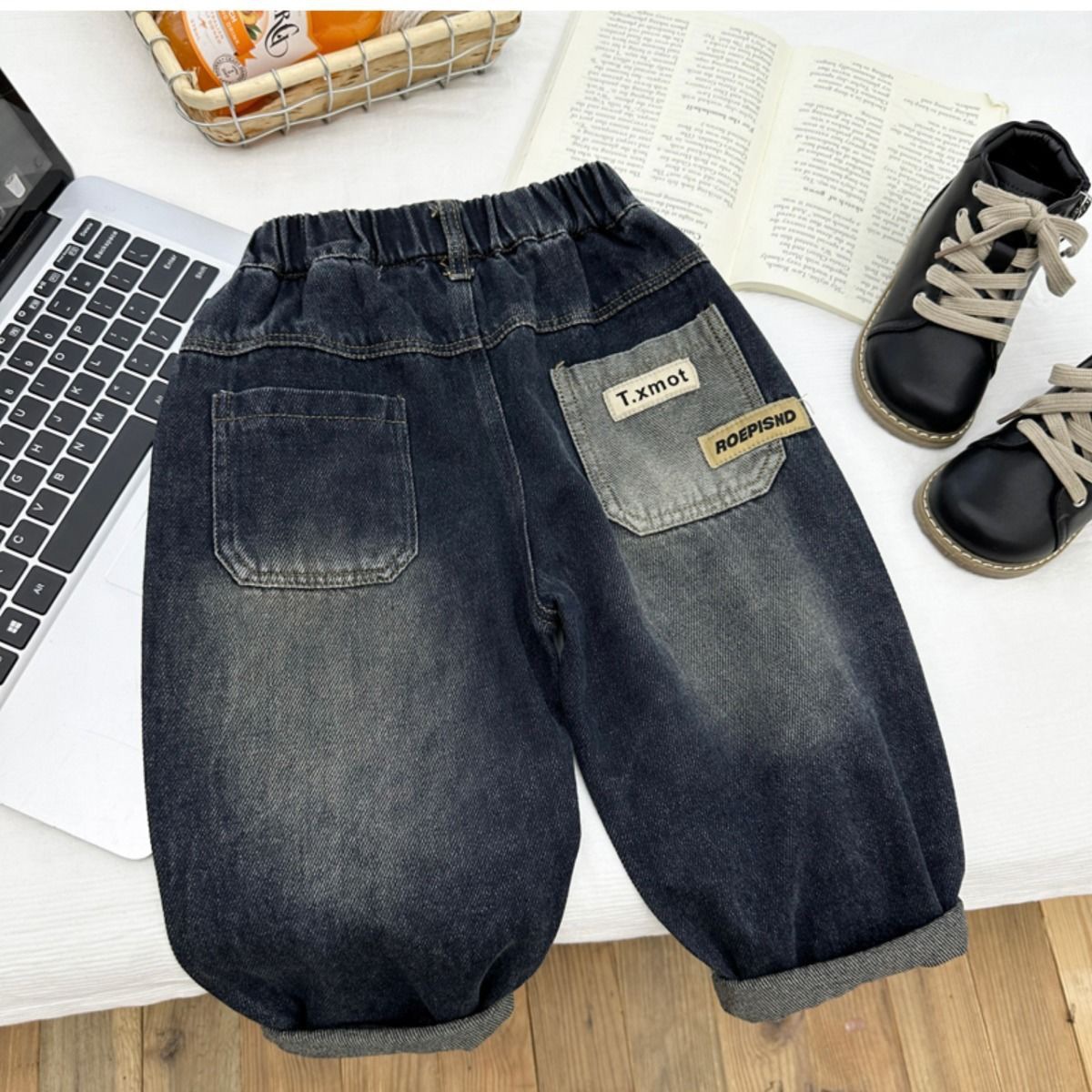 봄과 가을 남녀 아동복 청바지 아기의 서양식 어린이 성격 유행 인터넷 축하 편지 라벨링 하렘 바지스토어 가기