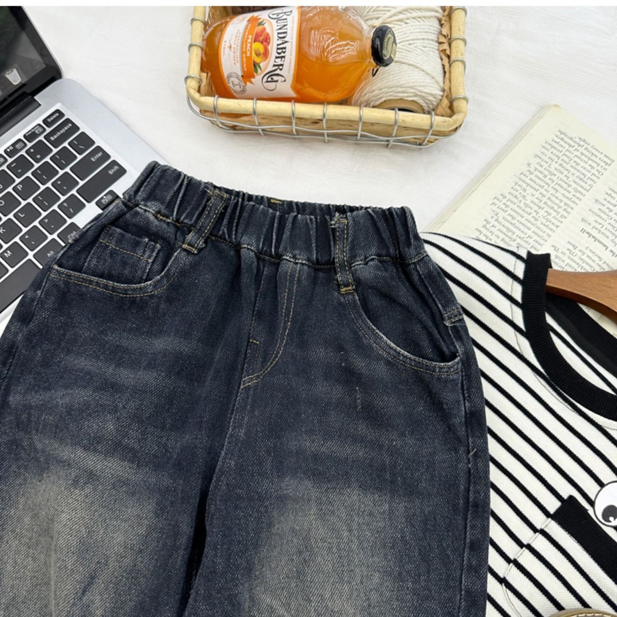 봄과 가을 남녀 아동복 청바지 아기의 서양식 어린이 성격 유행 인터넷 축하 편지 라벨링 하렘 바지
