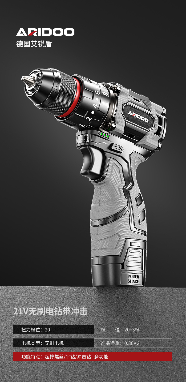 • 브러시리스 21V 듀얼 속도 [10셀] 듀얼 배터리 - 선물 팩