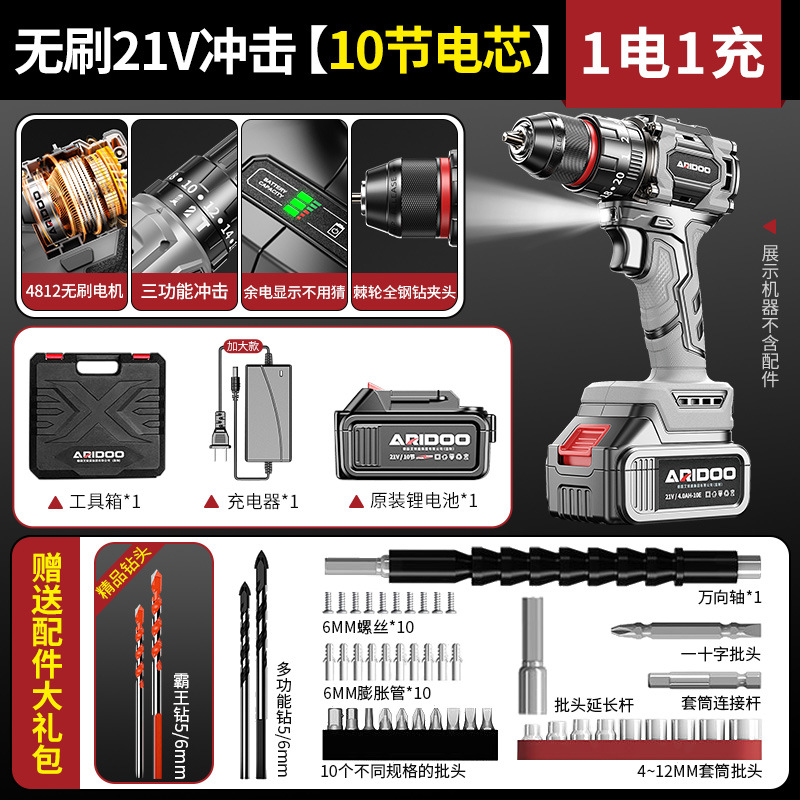 독일 브러시리스 핸드 전기 드릴 순수 구리 충격 드릴 가정용 충전식 전기 스크루 드라이버 작은 강철 총 리튬 전기 드릴 도매