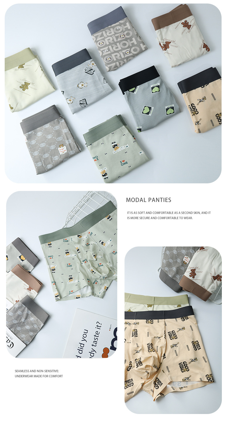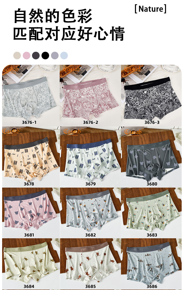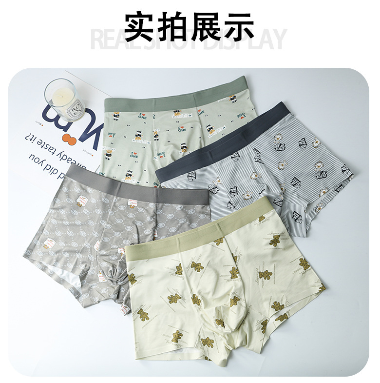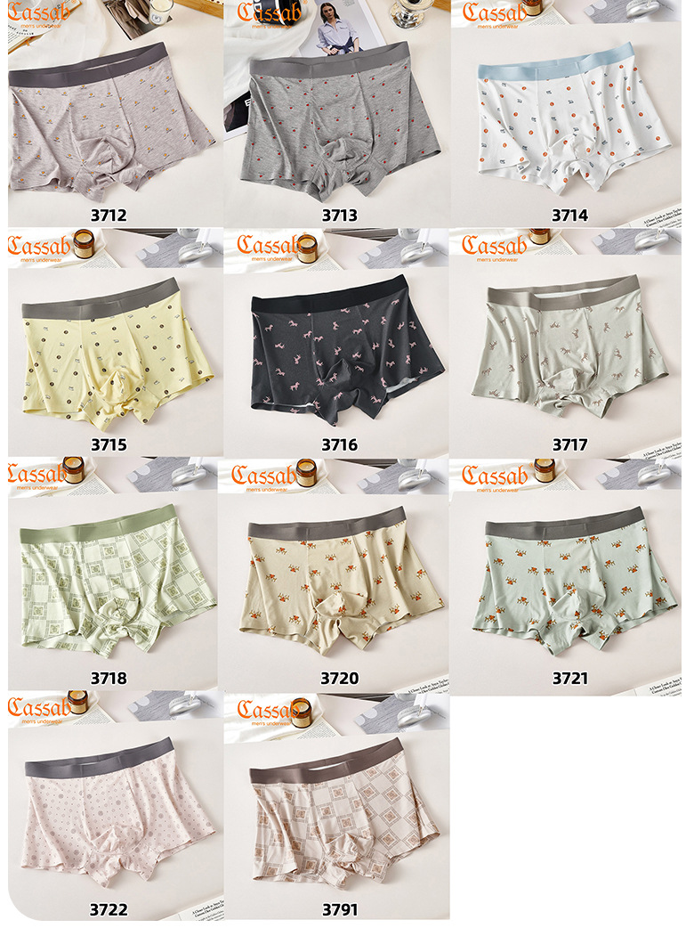 카샤 레오파드 인쇄 남성 속옷 모달 실크 부드럽고 편안한 통기성 알몸 및 추적없는 속옷 남성 속옷스토어 가기