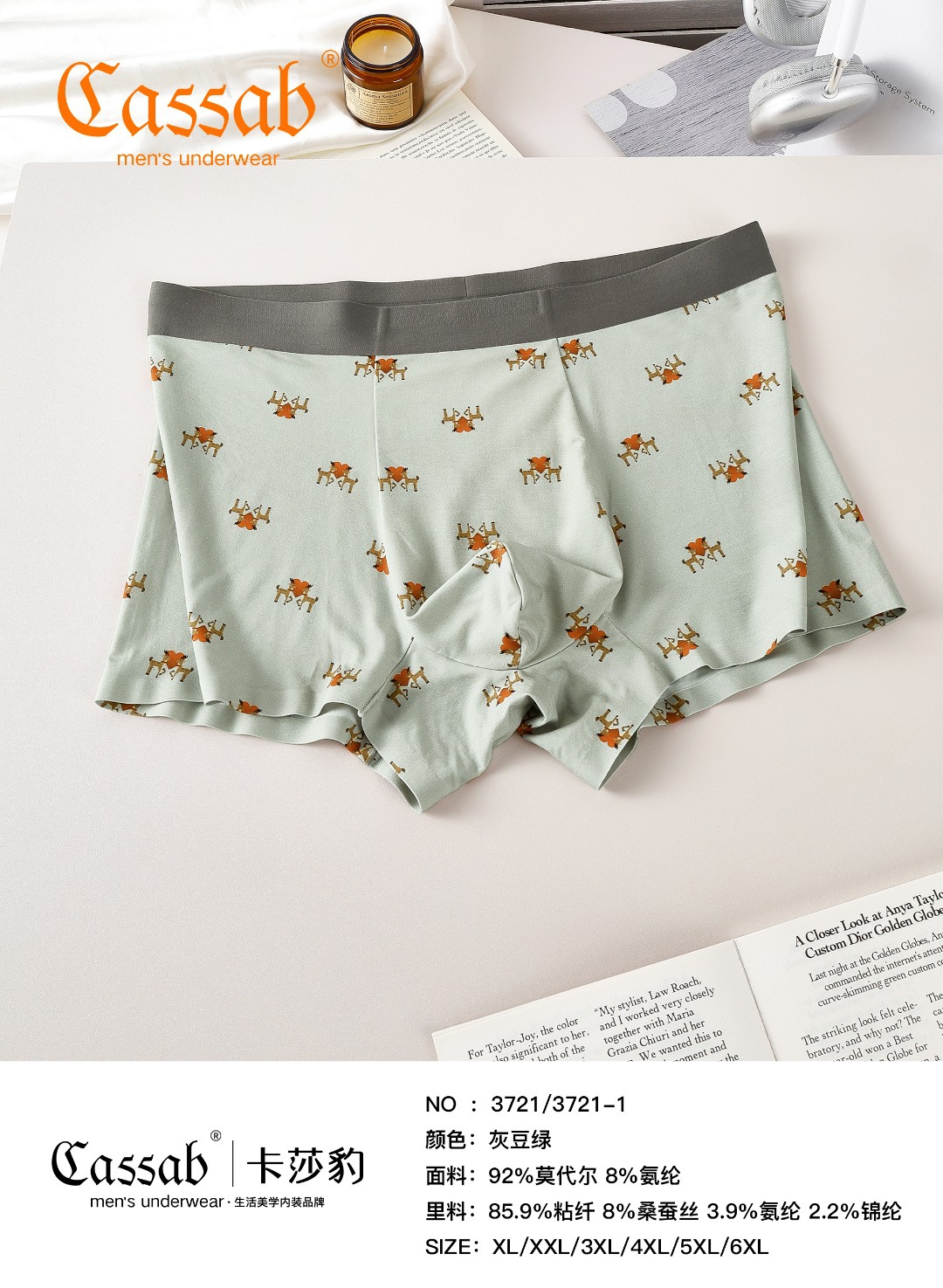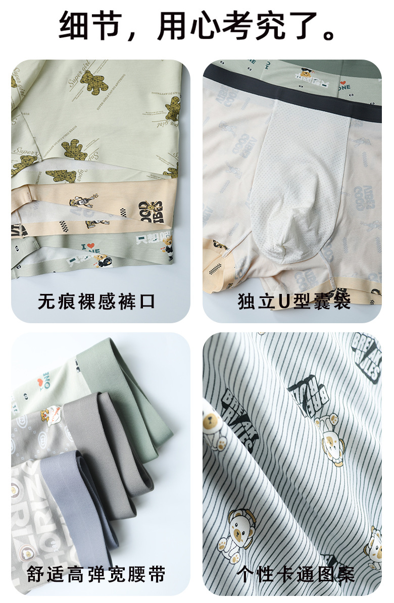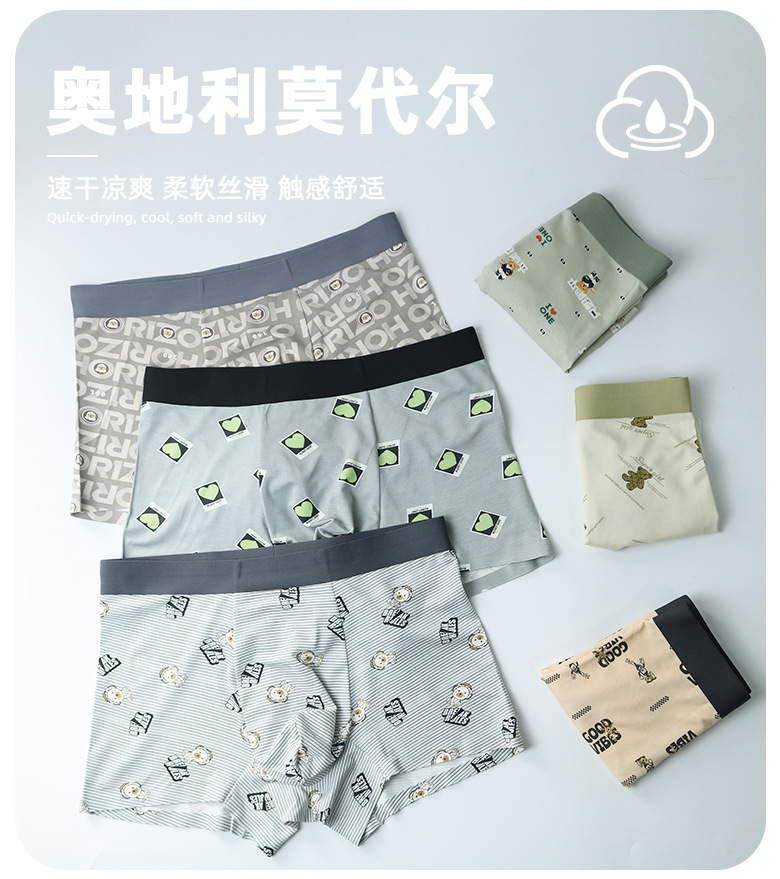 카샤 레오파드 인쇄 남성 속옷 모달 실크 부드럽고 편안한 통기성 알몸 및 추적없는 속옷 남성 속옷스토어 가기