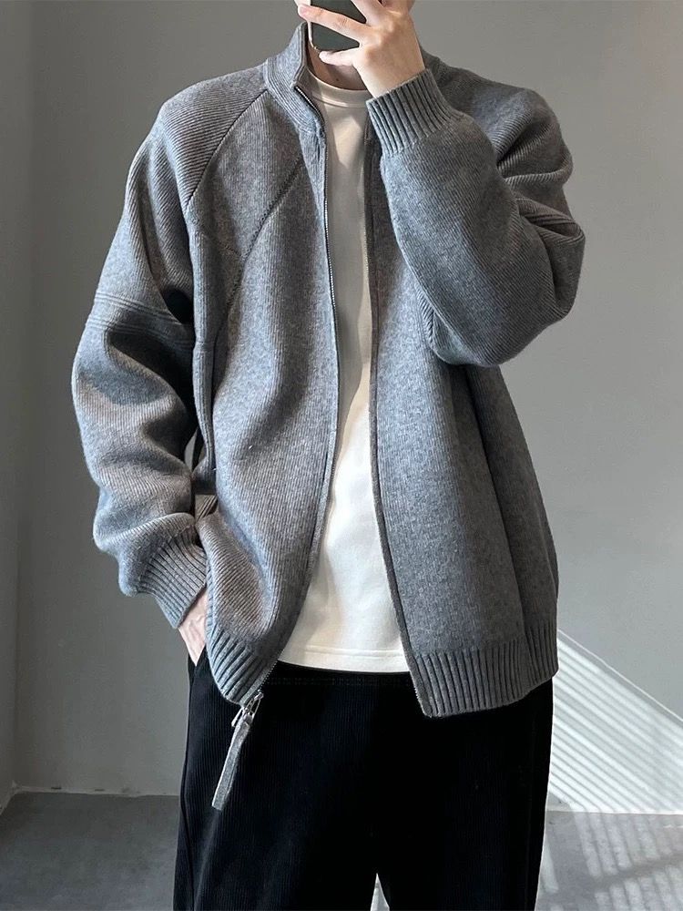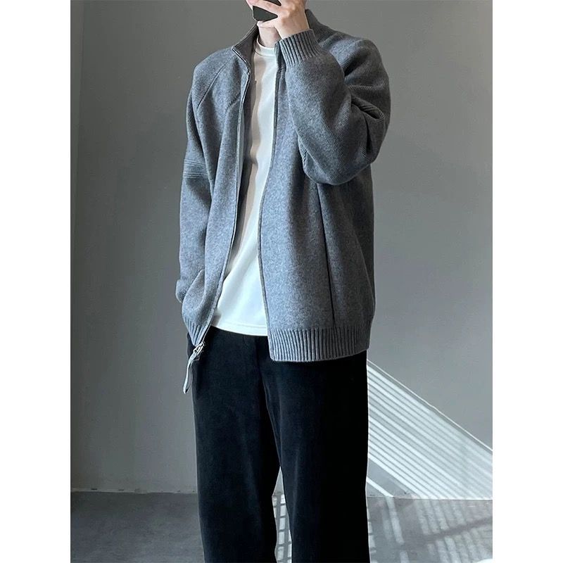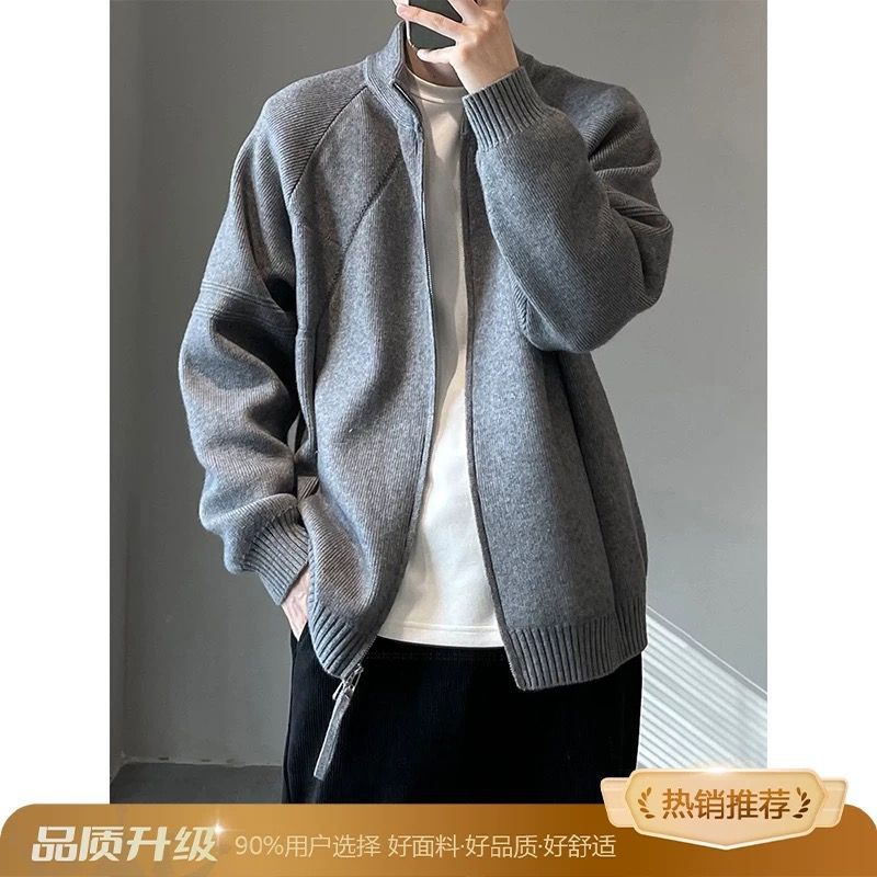 니트 카디건 재킷 남자 2025 뉴 블랙 가을과 겨울 하이 엔드 센스 게으른 스타일 한국 스타일 수직 칼라 지퍼 스웨터