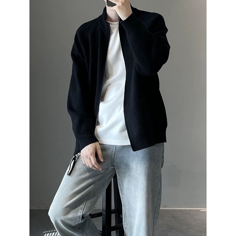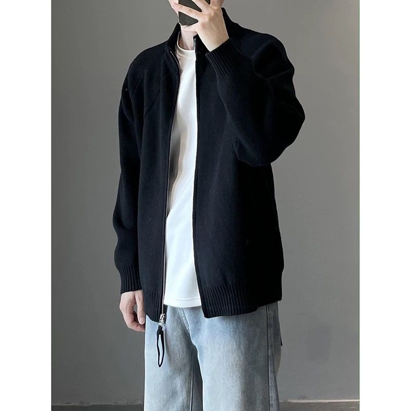 니트 카디건 재킷 남자 2025 뉴 블랙 가을과 겨울 하이 엔드 센스 게으른 스타일 한국 스타일 수직 칼라 지퍼 스웨터스토어 가기