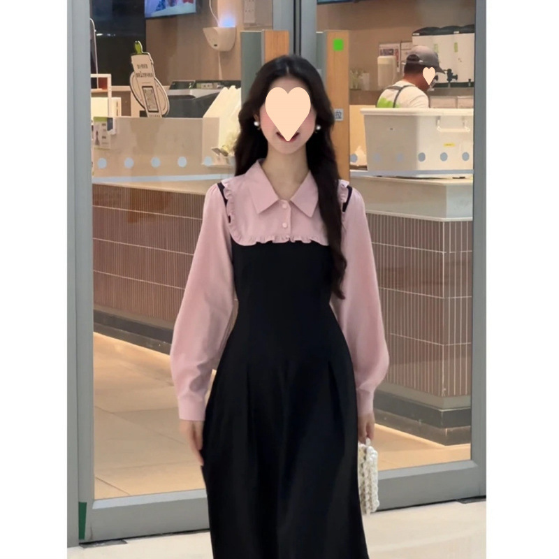 法式新款撞色2024假两件收腰显瘦气质连衣裙超仙公主爆款年轻