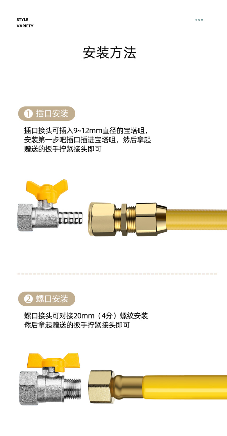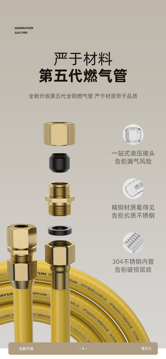 Jia Yun 천연 가스 특수 파이프 황동 나사 삽입 인터페이스 4 점 가스 파이프 두꺼운 벨로 폭발 방지 가스 파이프스토어 가기