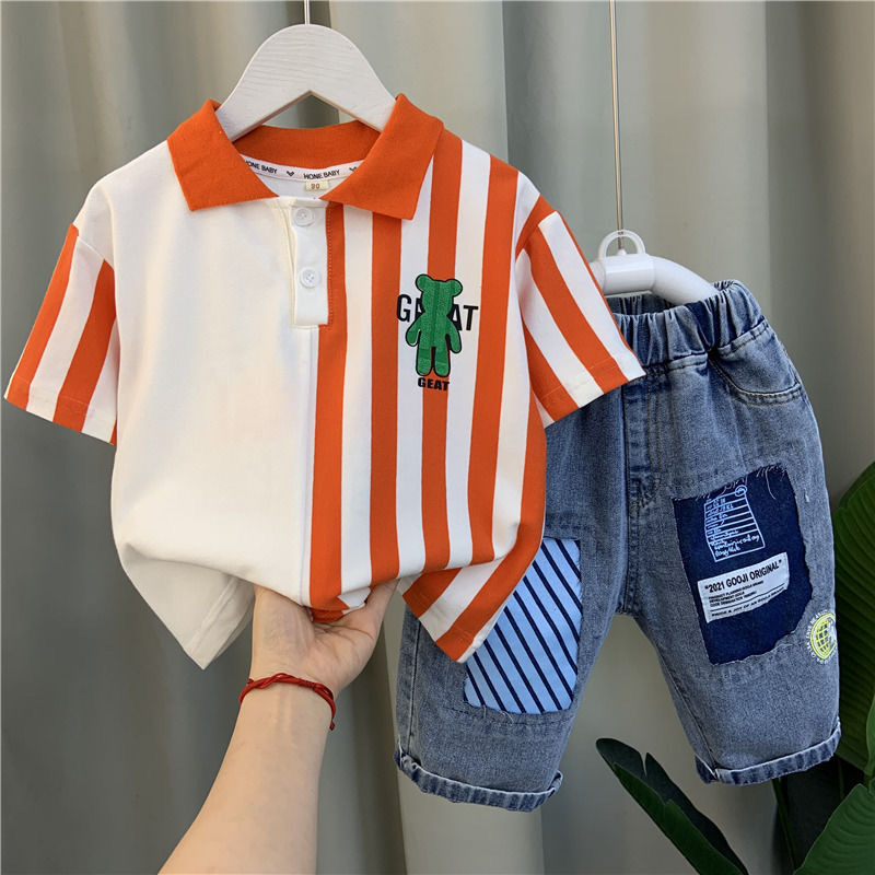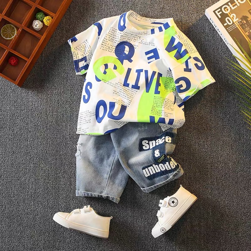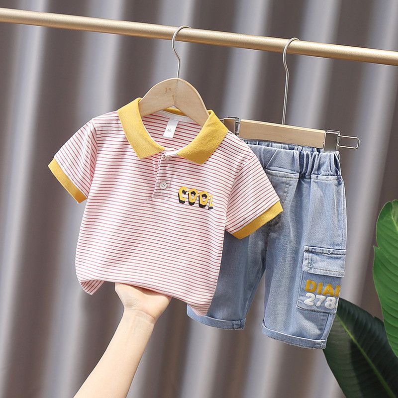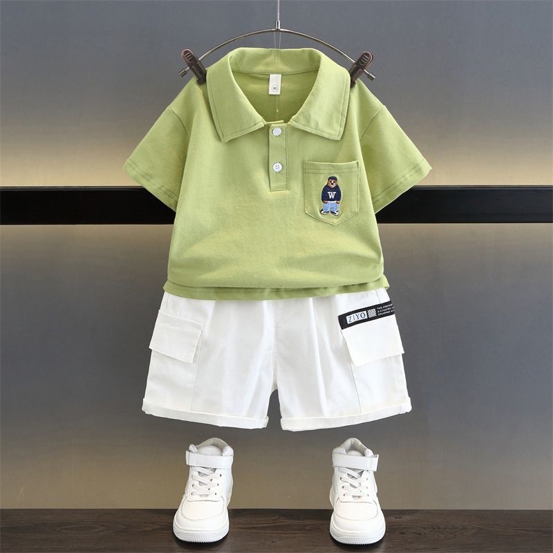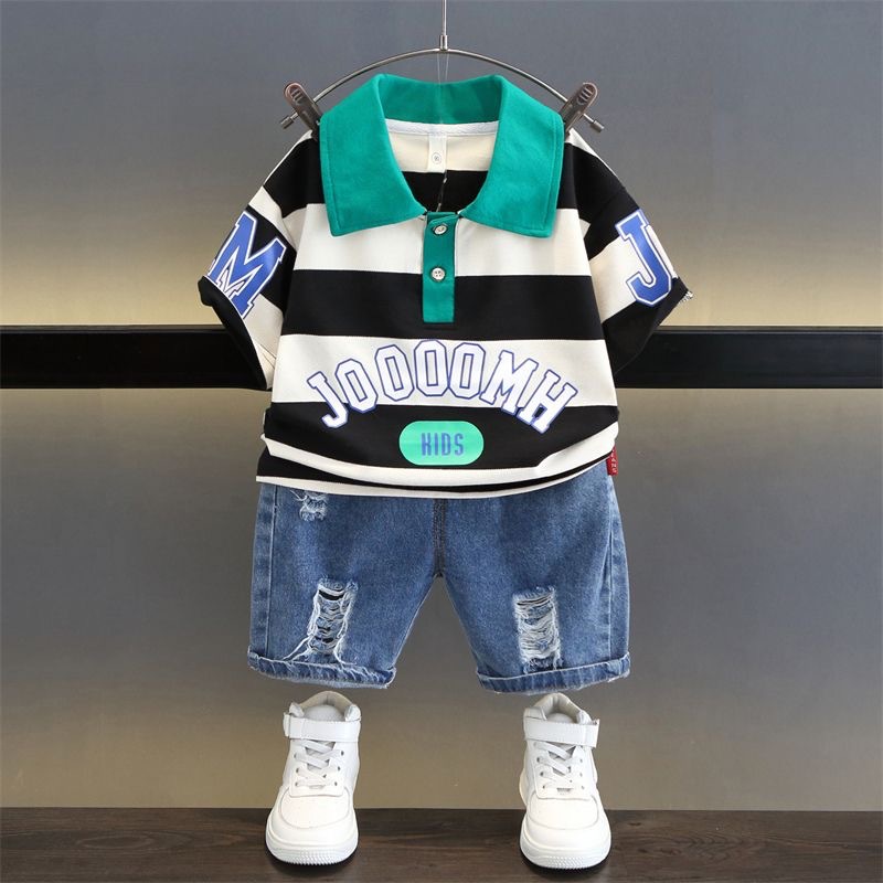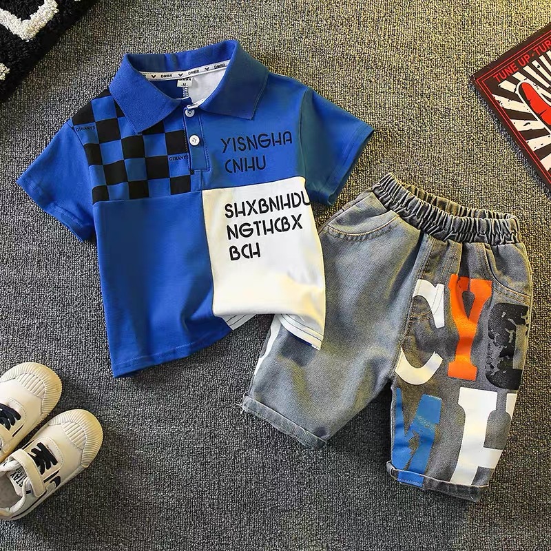 소녀 여름 반팔 세트 2025 어린 소녀를위한 새로운 스타일의 트렌디 한 옷 남자를위한 유행 잘 생긴 투피스 세트스토어 가기