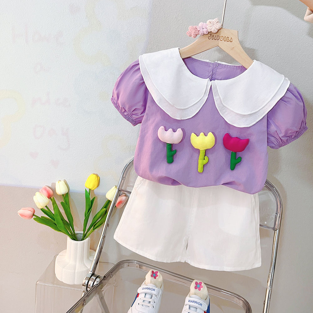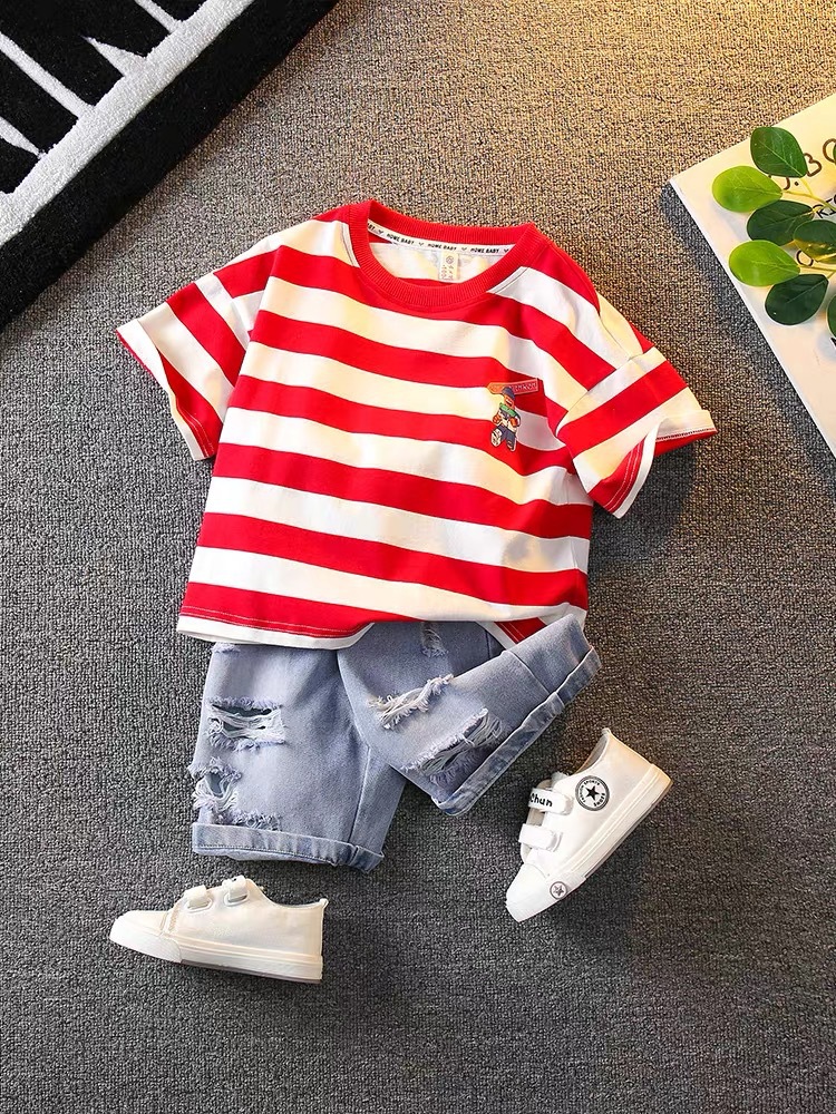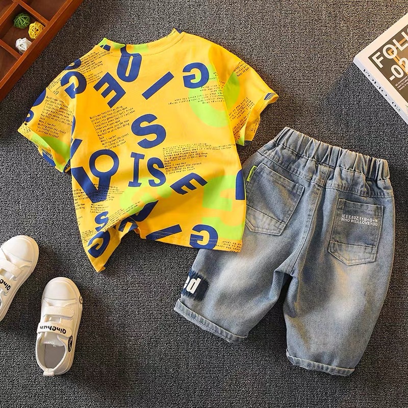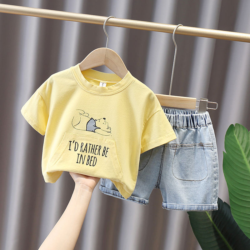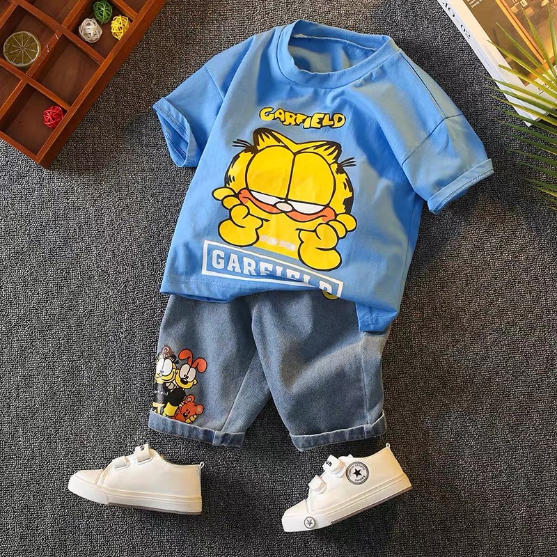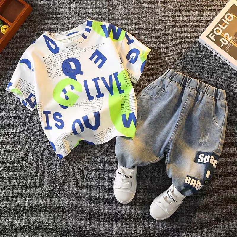 소녀 여름 반팔 세트 2025 어린 소녀를위한 새로운 스타일의 트렌디 한 옷 남자를위한 유행 잘 생긴 투피스 세트스토어 가기