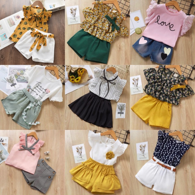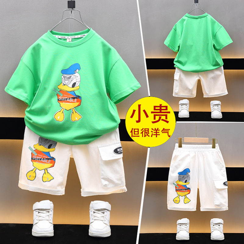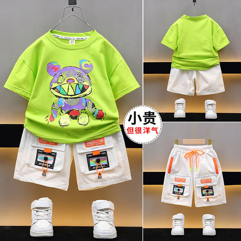 소녀 여름 반팔 세트 2025 어린 소녀를위한 새로운 스타일의 트렌디 한 옷 남자를위한 유행 잘 생긴 투피스 세트