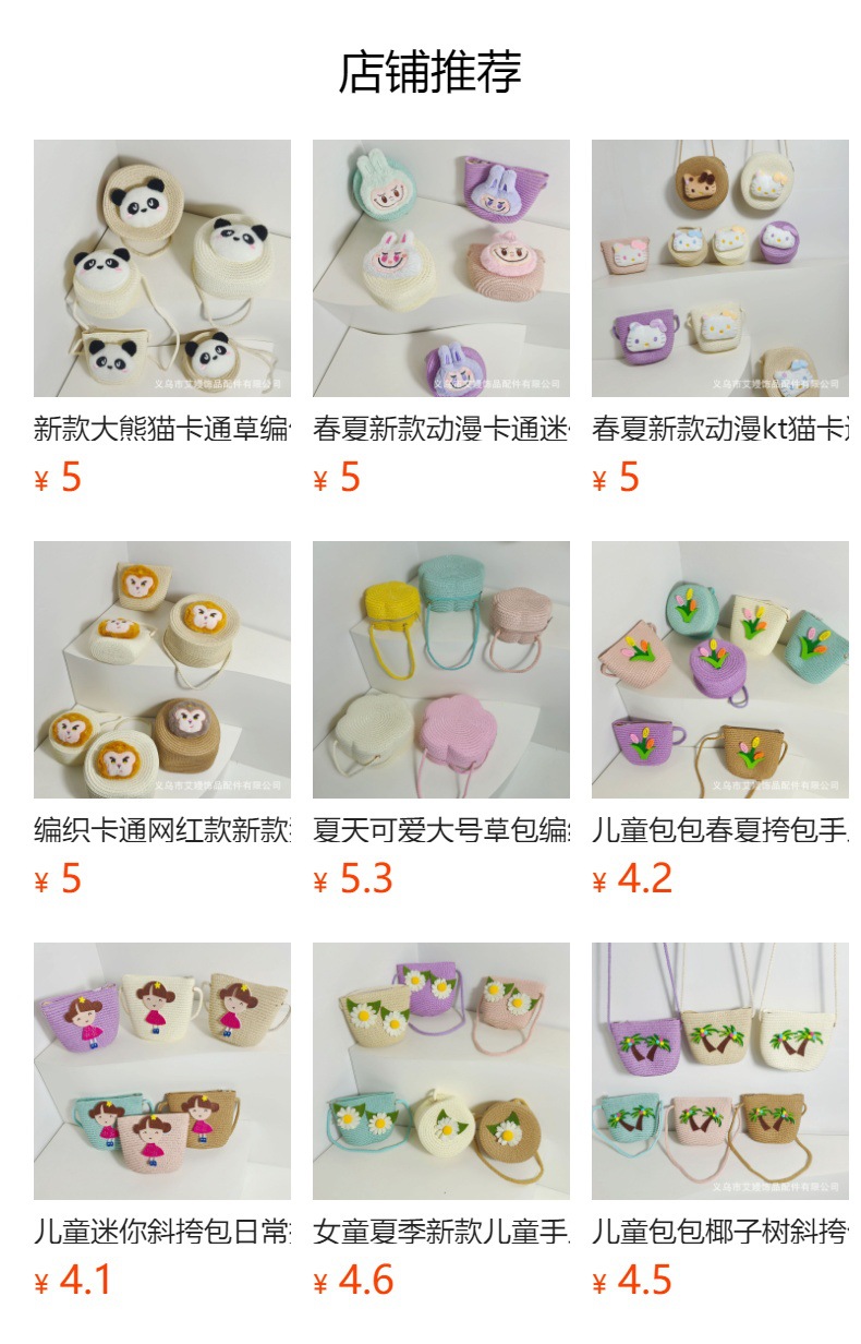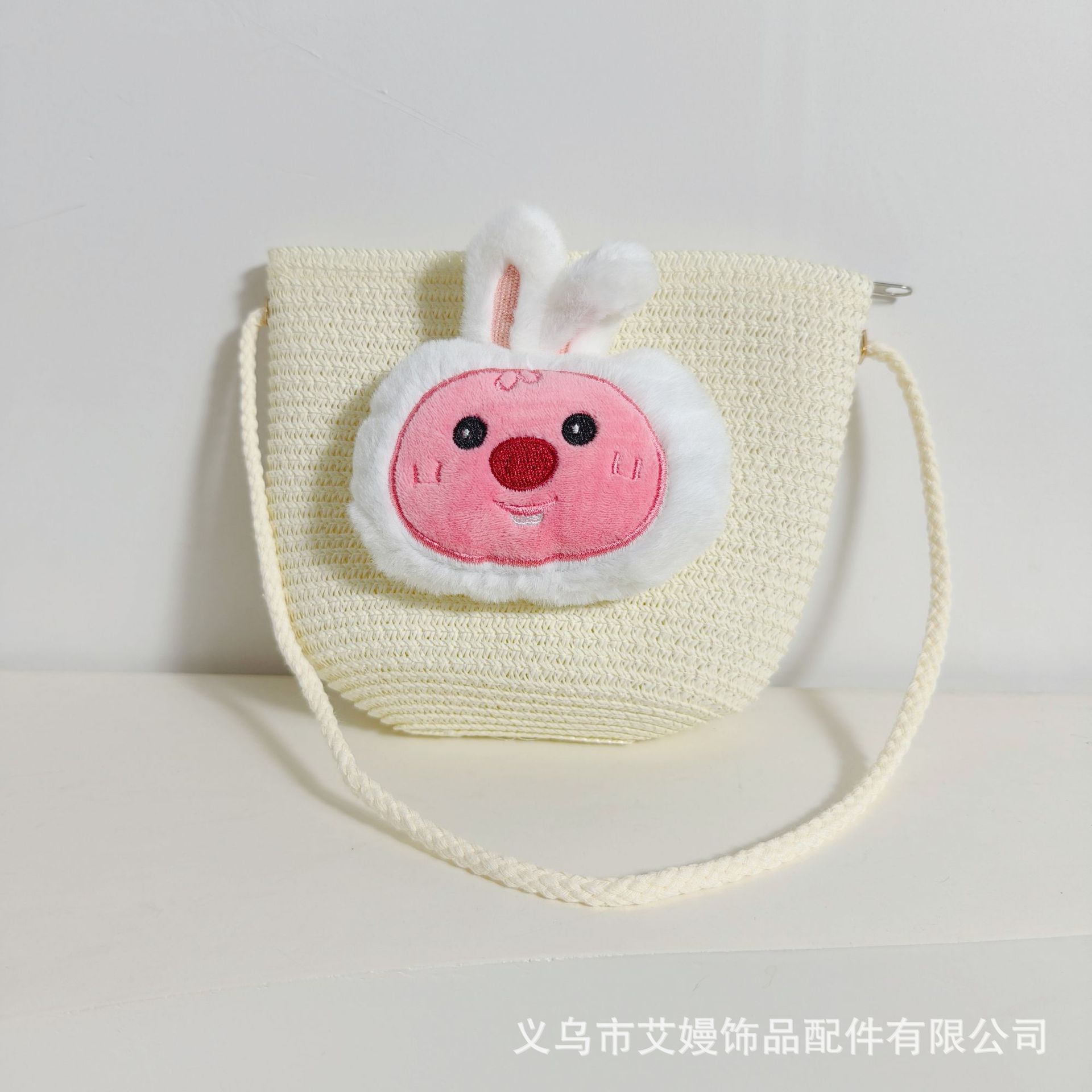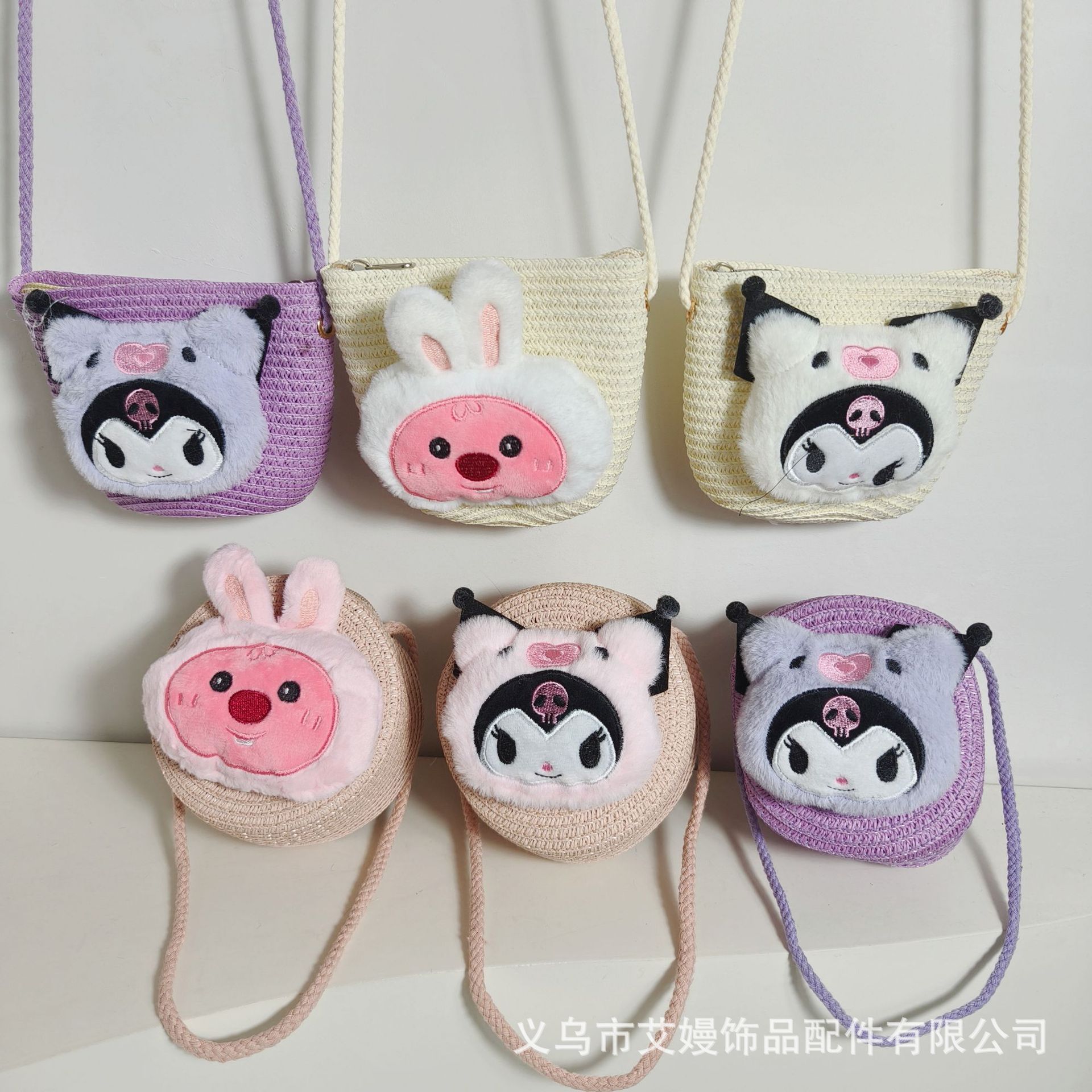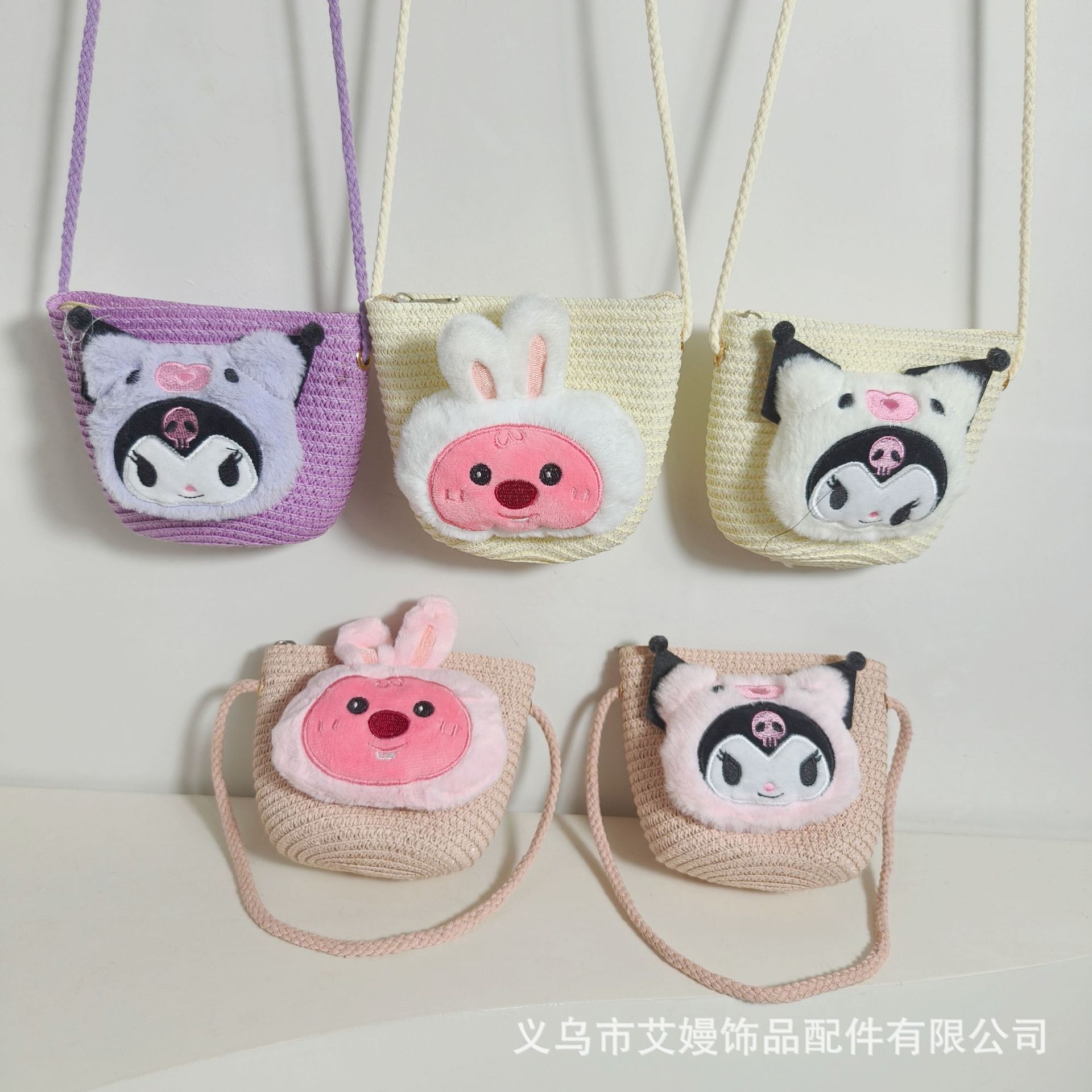 Kulomi 패션 밀짚 가방 귀여운 만화 밀짚 가방 대형 컬렉션 어린이 작은 가방 도매 달리기 학생 메신저 가방스토어 가기