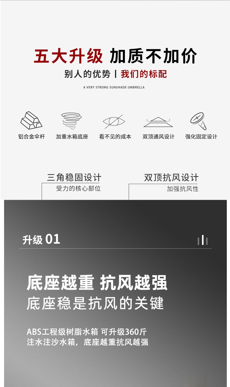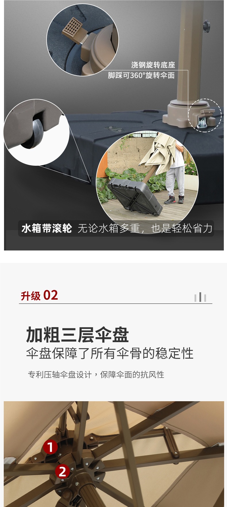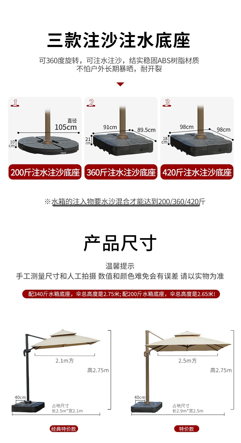 • 라이트바우산 [10세대 명품모델 8.3CM 항공알루미늄폴] 3m사각 - 180kg바퀴 물탱크