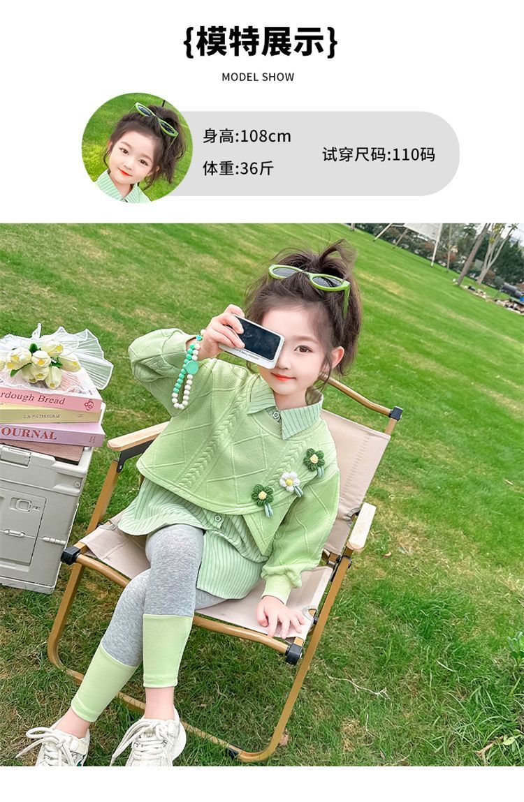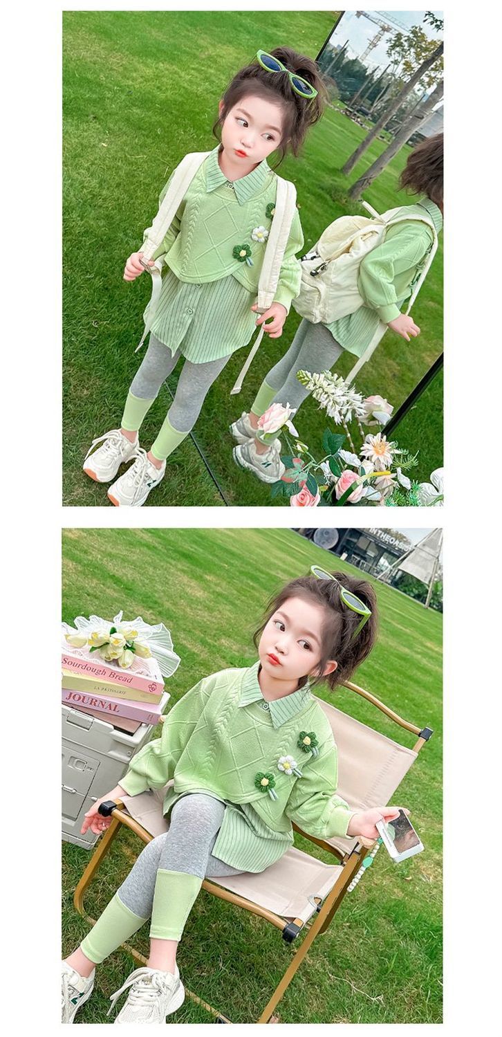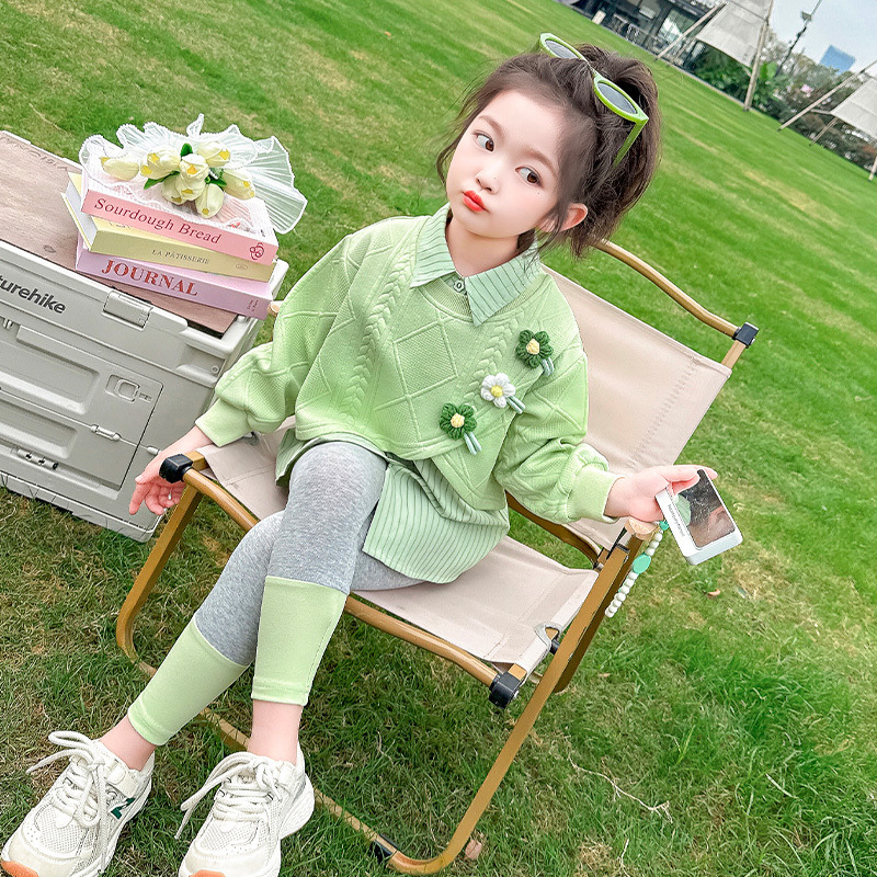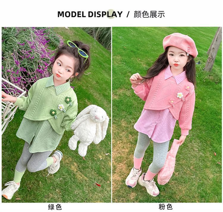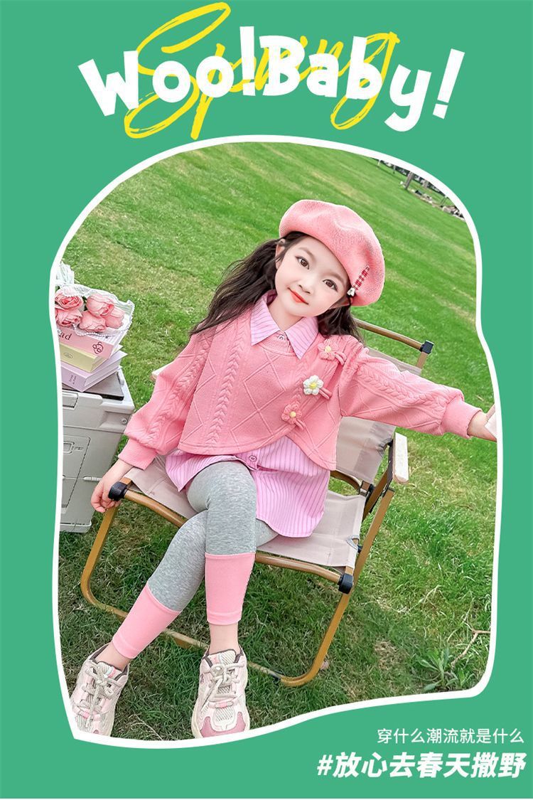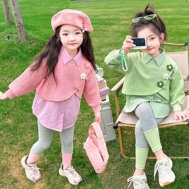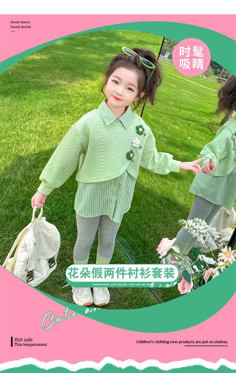 [점포 판매] 소녀 가짜 투피스 셔츠 세트 봄 · 가을 아기 외국식 레깅스 봄옷스토어 가기