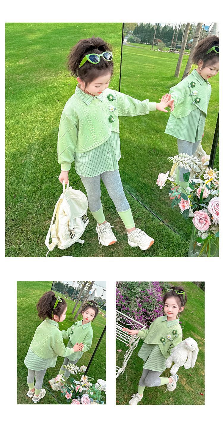 [점포 판매] 소녀 가짜 투피스 셔츠 세트 봄 · 가을 아기 외국식 레깅스 봄옷