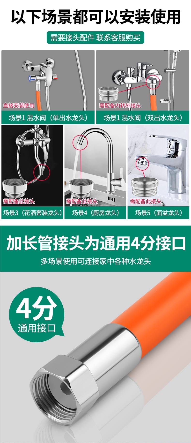 • 【30cm】수전 확장기 + 변환 헤드◆주황색